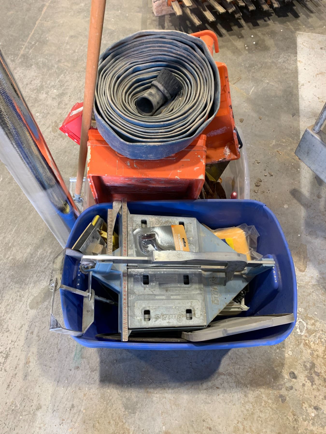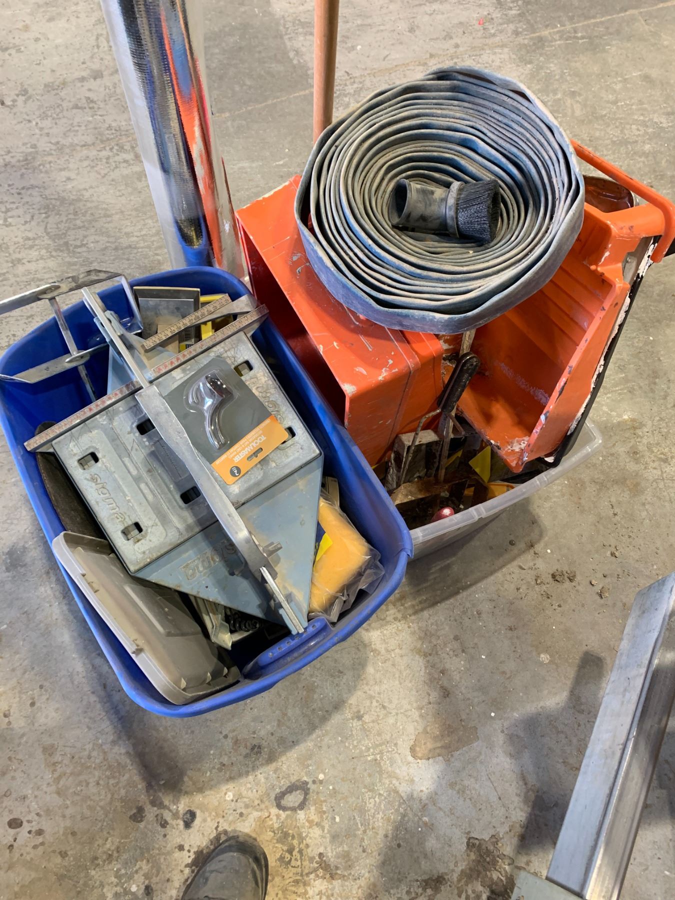 2 PLASTIC STORAGE BINS OF PAINTERS/PLASTER/DRYWALL TOOLS