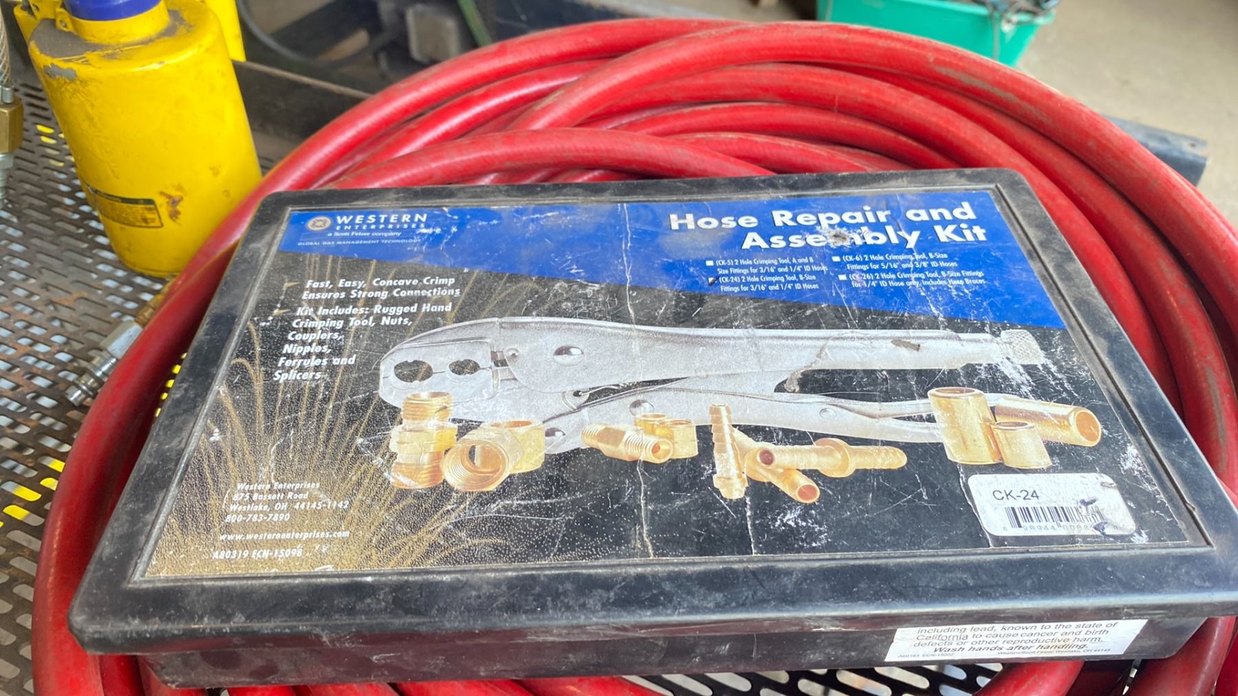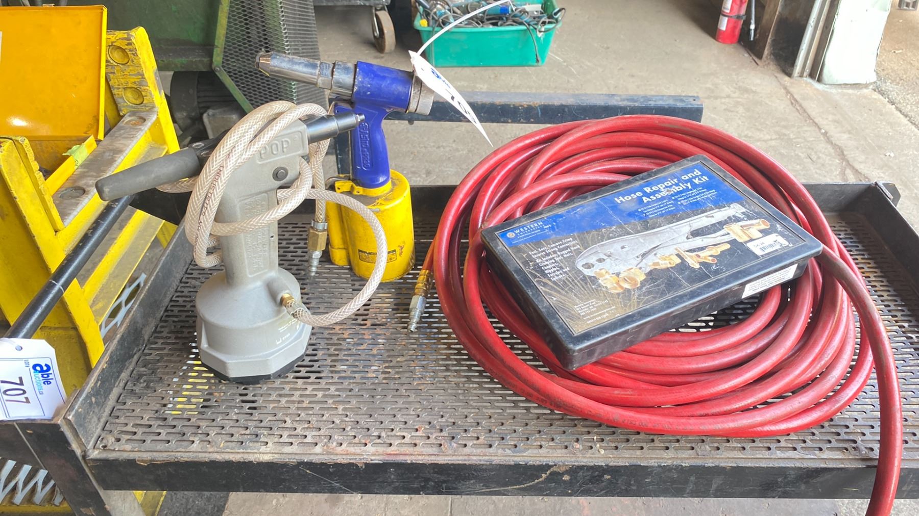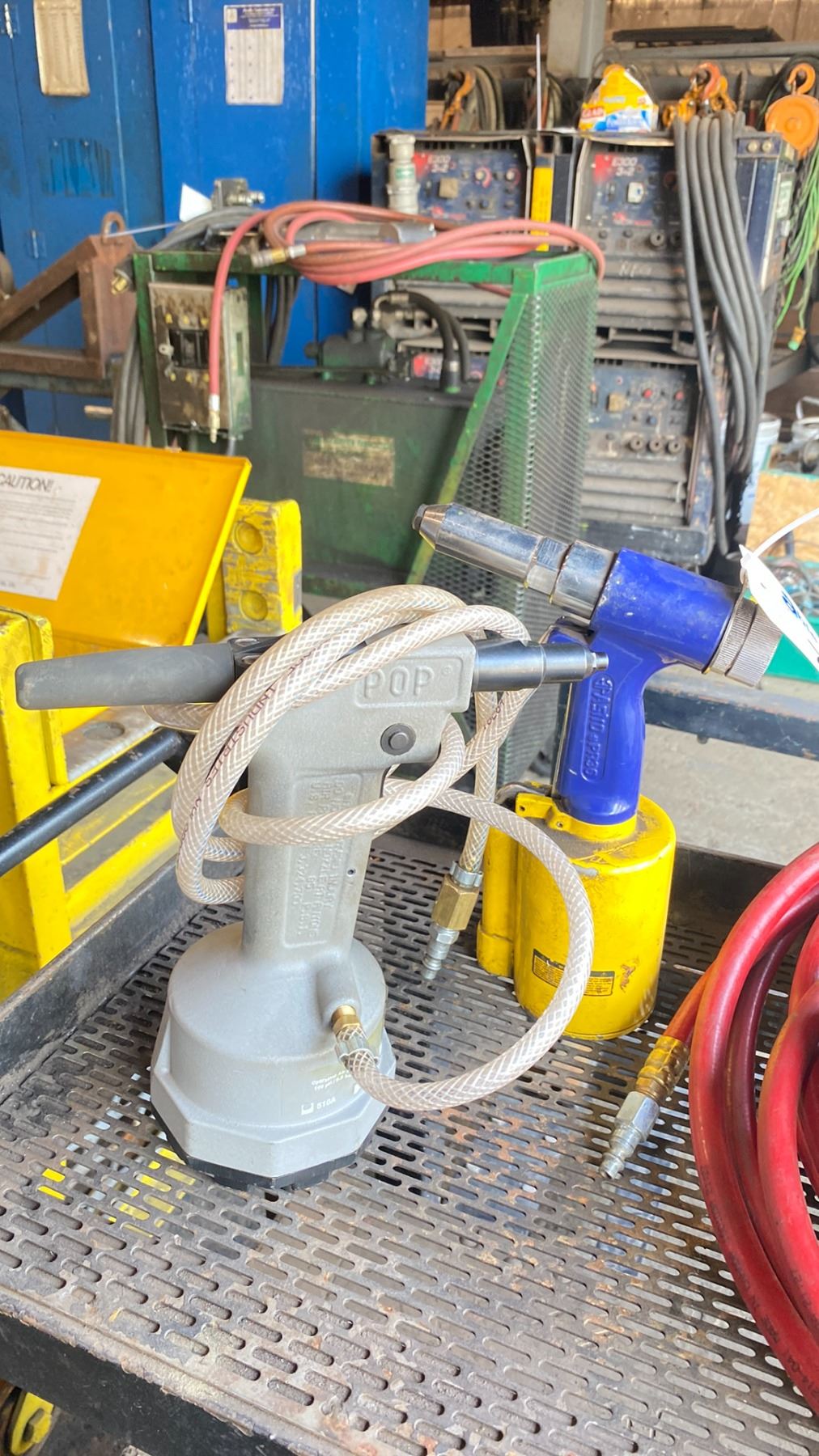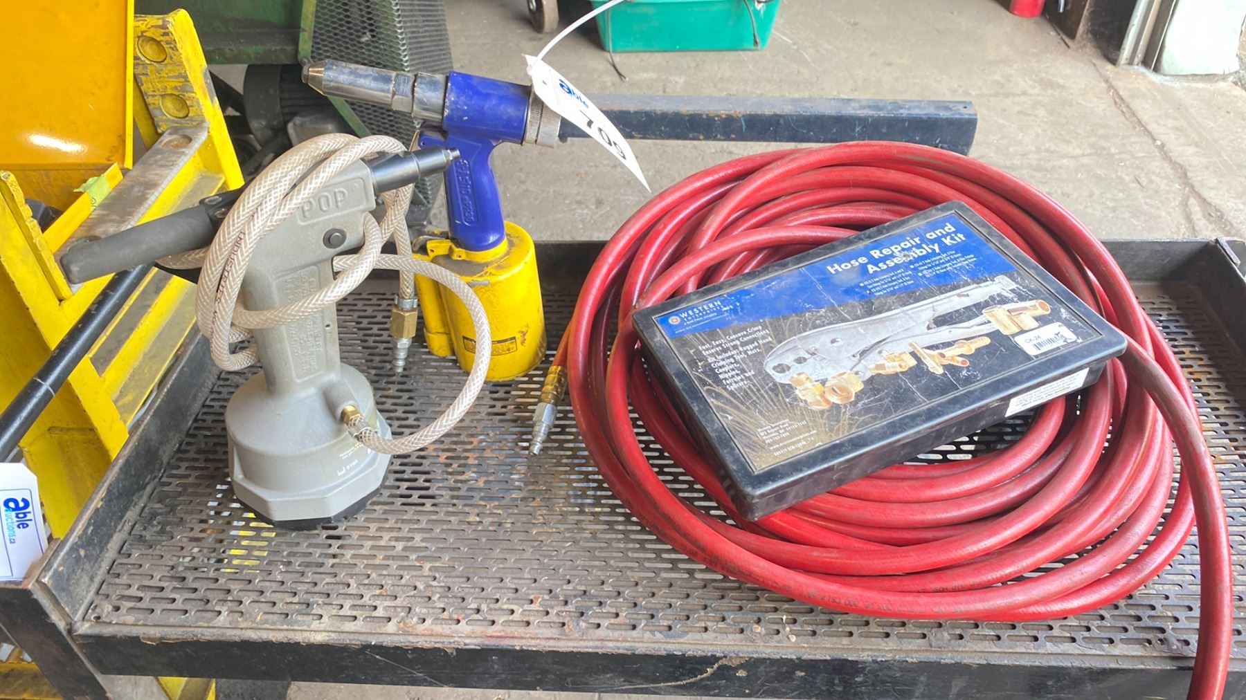 2 PNEUMATIC RIVET GUNS WITH AIR LINE HOSE & HOSE REPAIR KIT