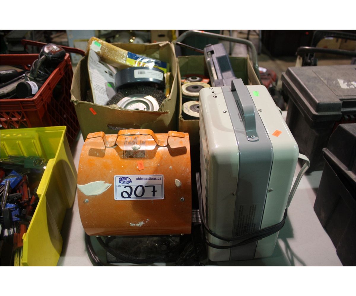 2 PORTABLE SHOP HEATERS, GRINDING DISCS & MISC