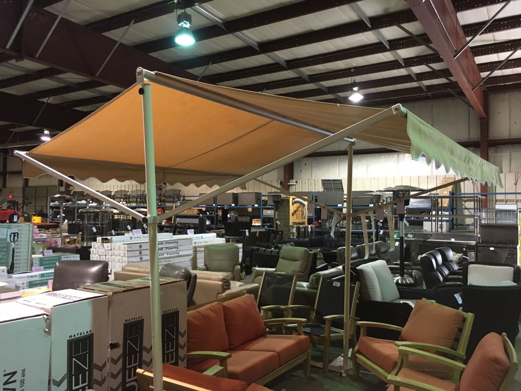 2 POST PORTABLE / RETRACTABLE ACRYLIC PATIO AWNING SYSTEM WHITE FRAME & FAWN FABRIC
