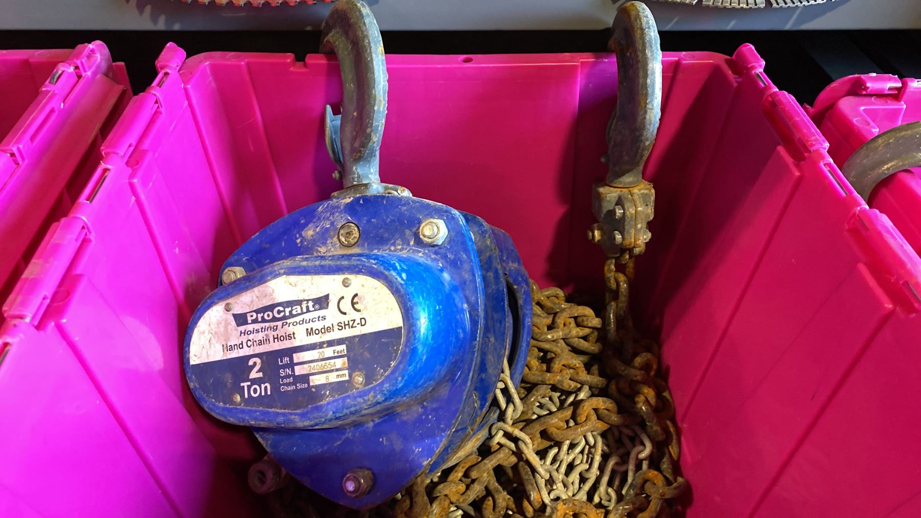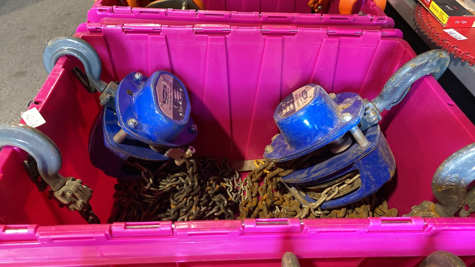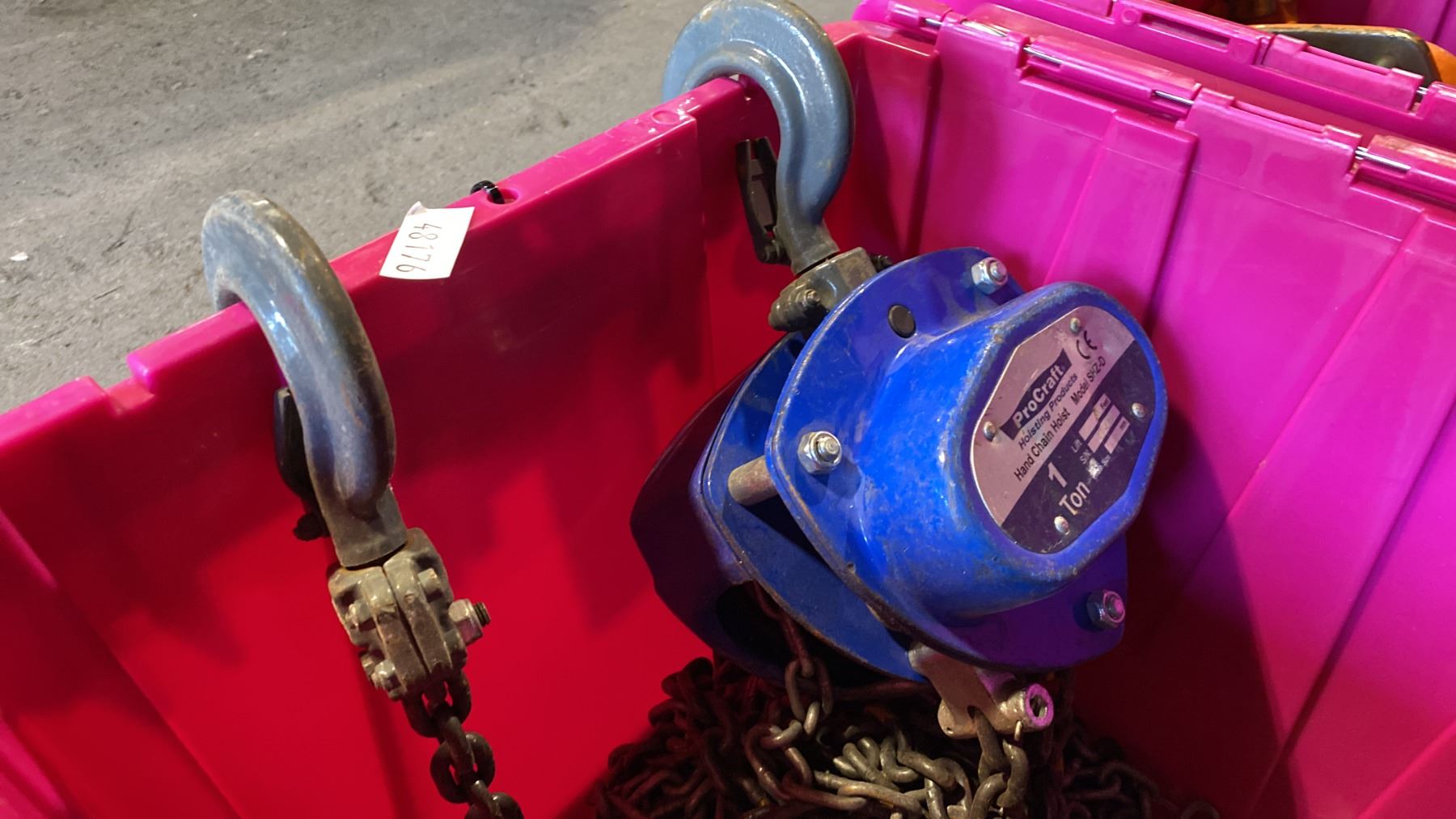 2 PROCRAFT CHAIN HOISTS- 2 TON & 1 TON *BIN NOT INCLUDED*