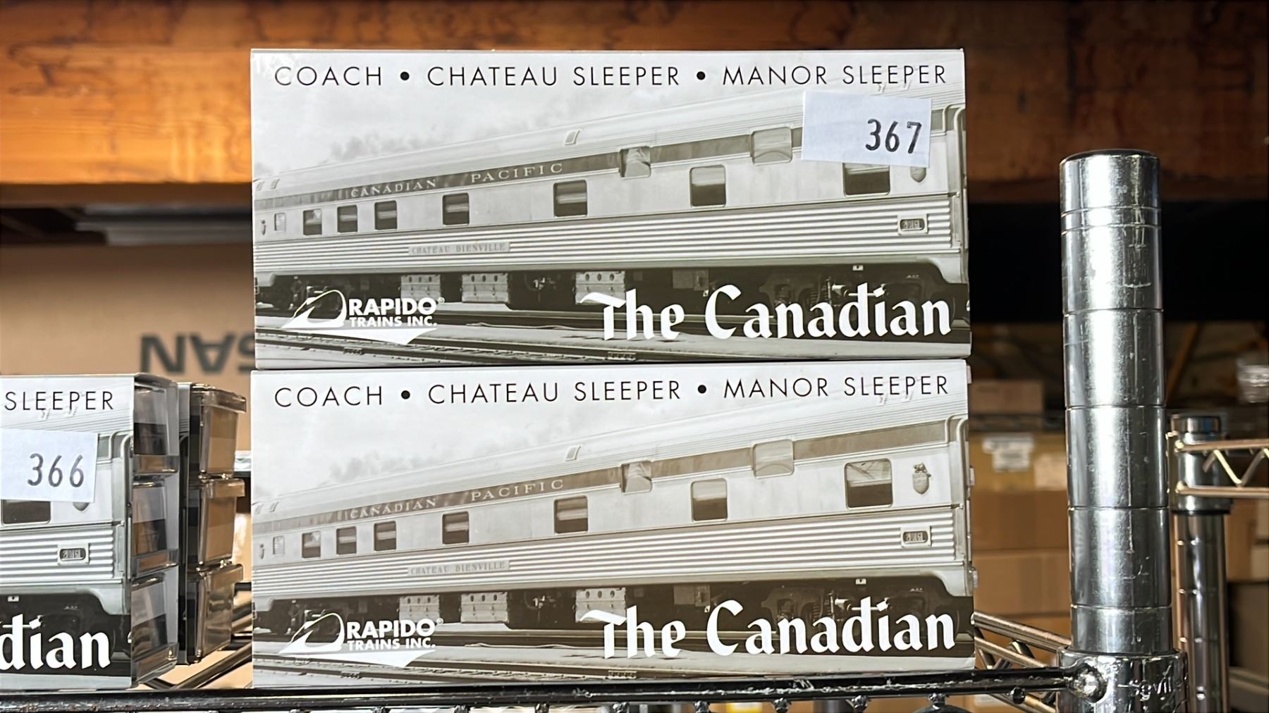2 RAPIDO TRAINS INC THE CANADIAN COACH, CHATEAU SLEEPER & MANOR SLEEPER N SCALE MODEL TRAINS