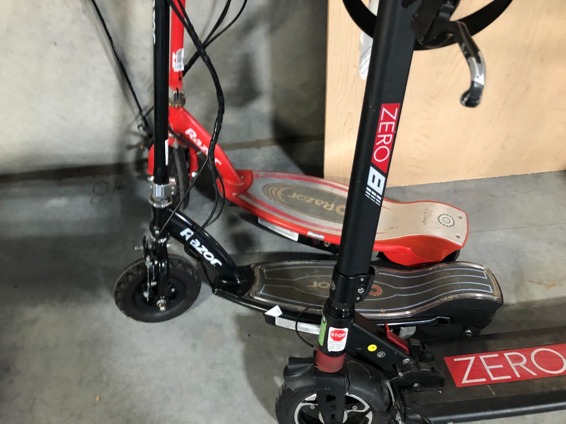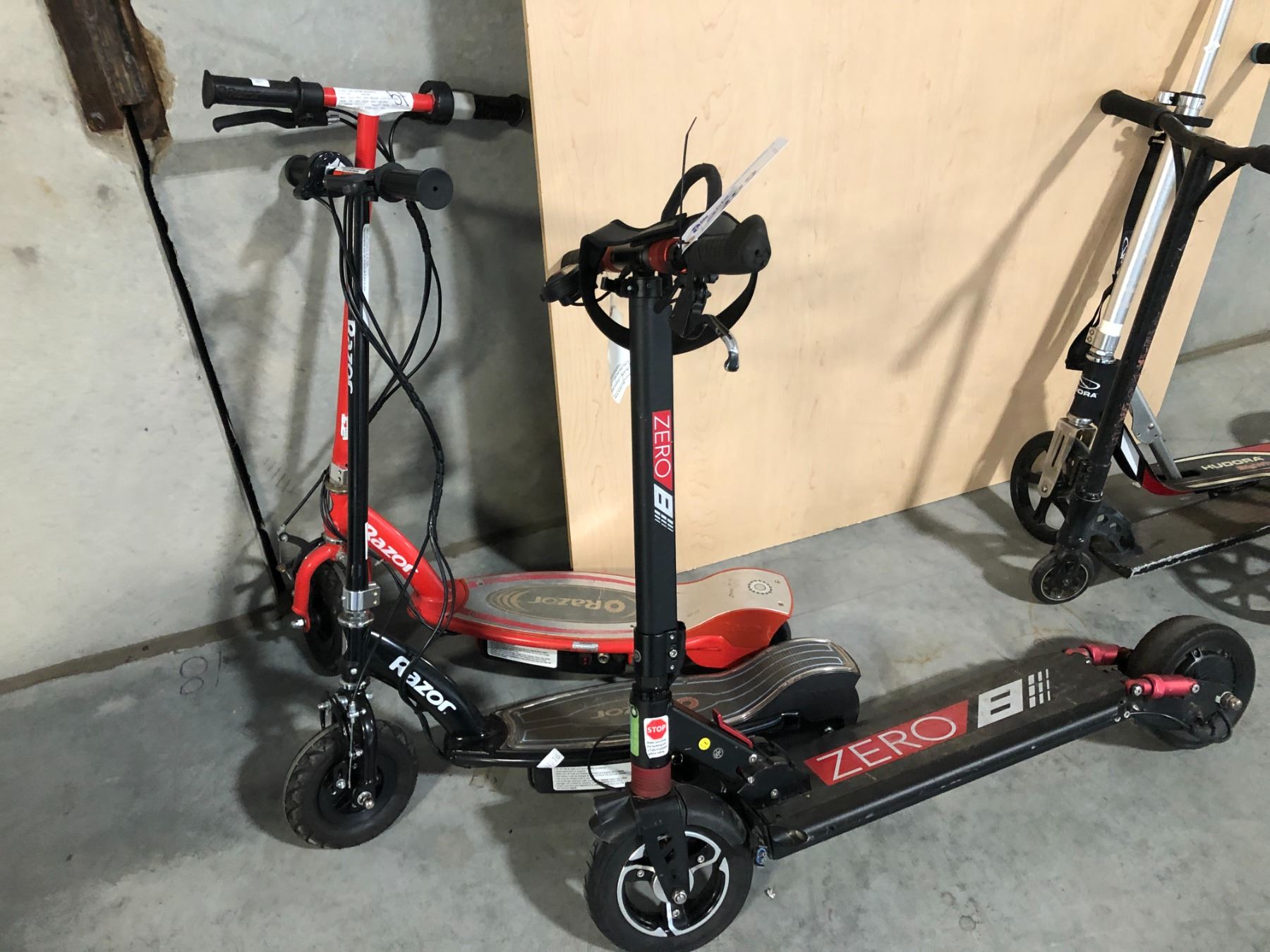 2 RAZOR AND 1 ZERO 8 ELECTRIC SCOOTERS NO CHARGER