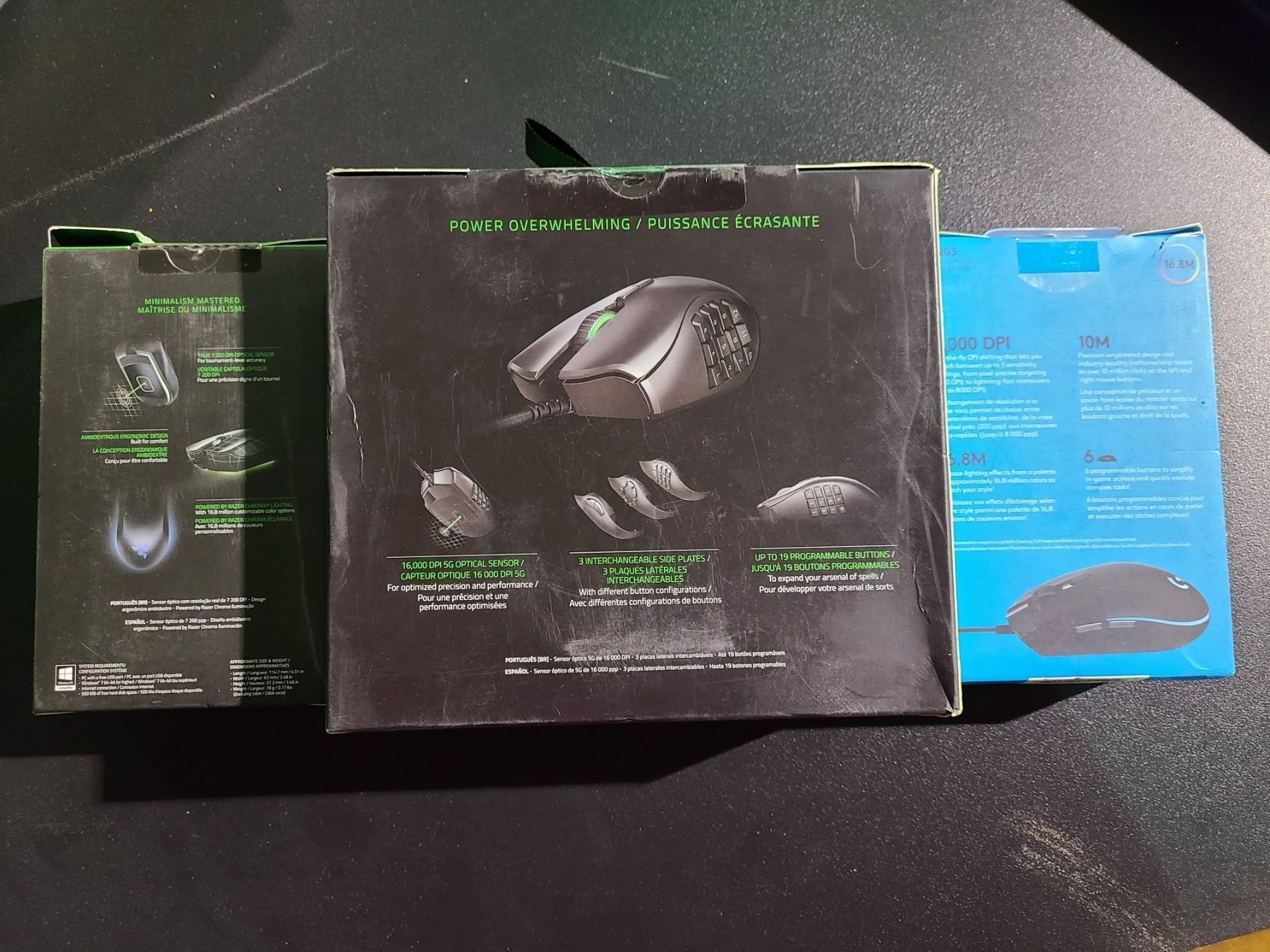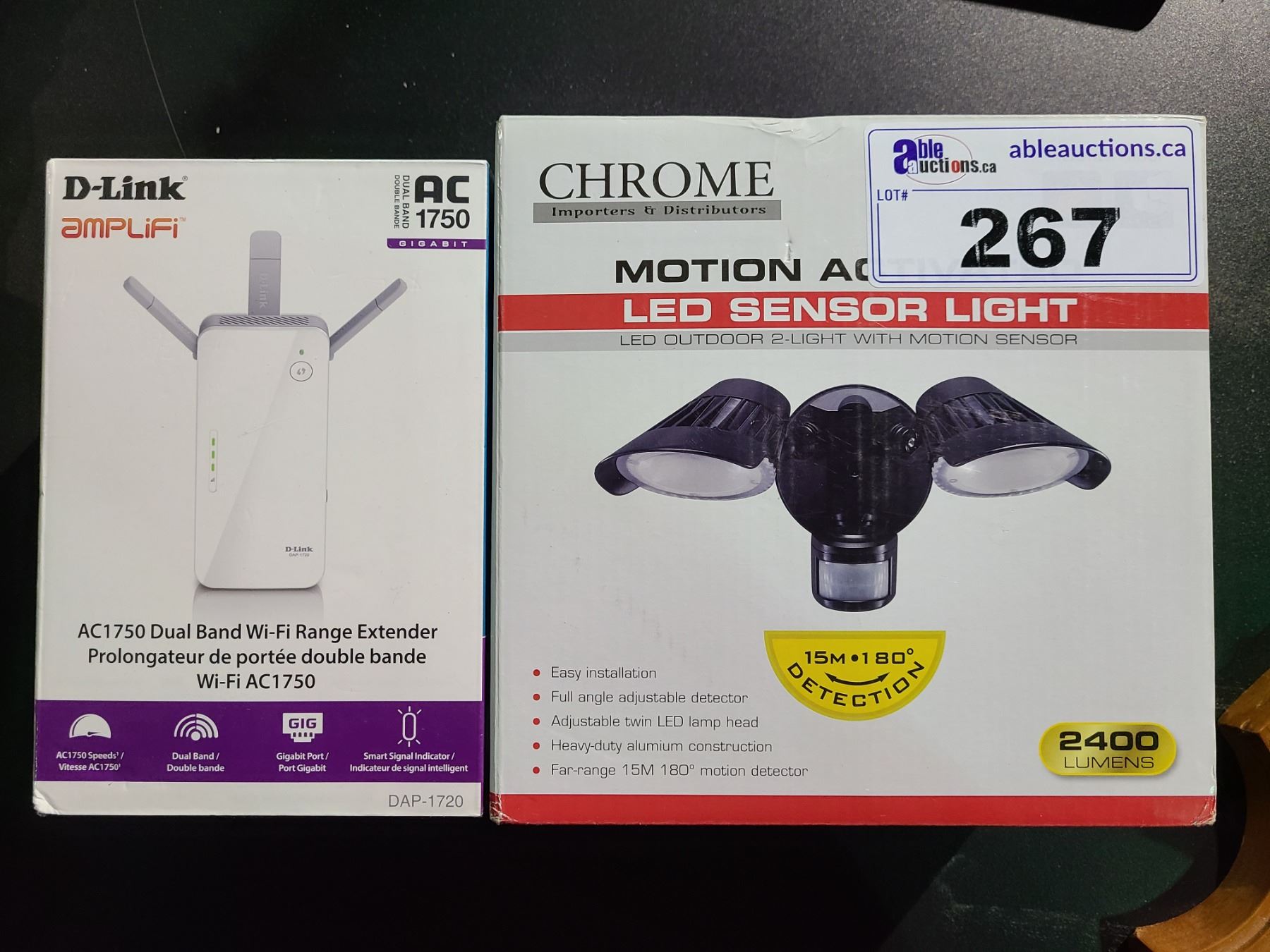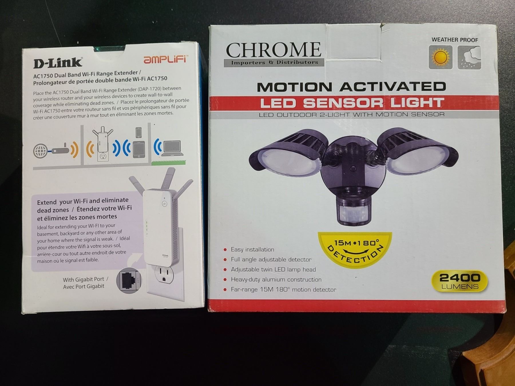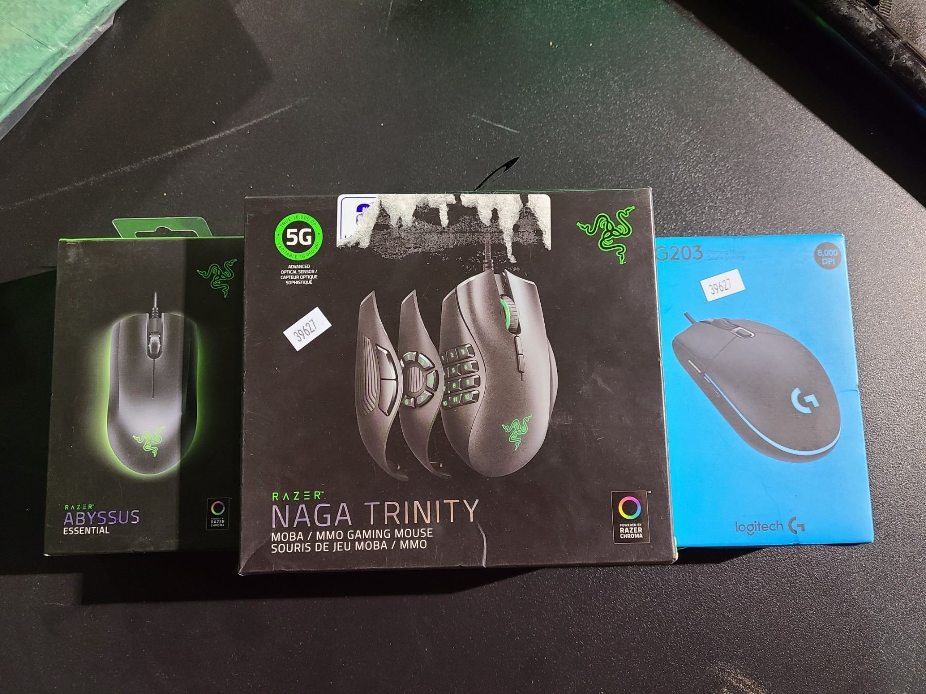 2 RAZOR GAMING MICE, 2 PAIRS OF BLACKWEB WIRELESS EAR BUDS, D-LINK RANGE EXTENDER, 2400 LUMIN LED SENSOR LIGHT, & LOGITECH MOUSE