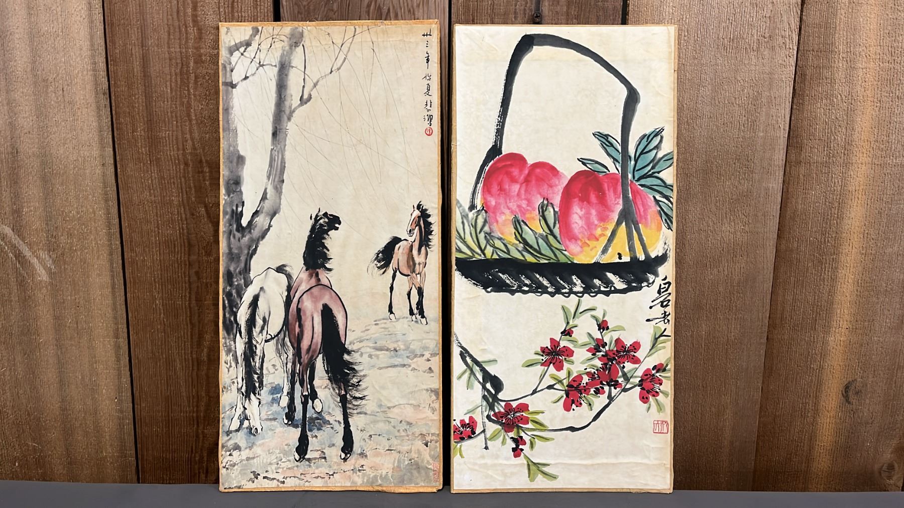 (2) RECTANGULAR HORSE & PEACH PANELS