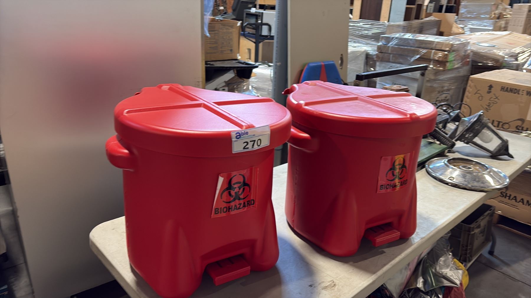 2 RED BIO HAZARD CONTAINERS