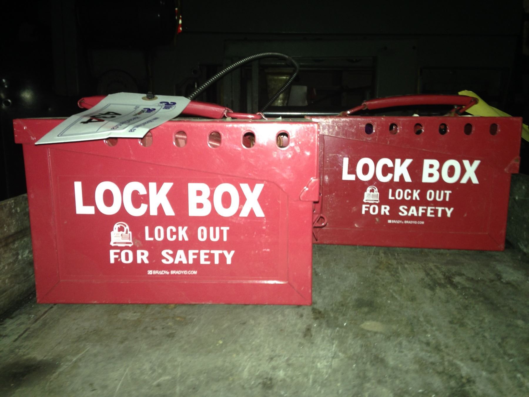 2 RED BRADY JOB SITE LOCK BOXES WITH SINGLE KEYED LOCKS