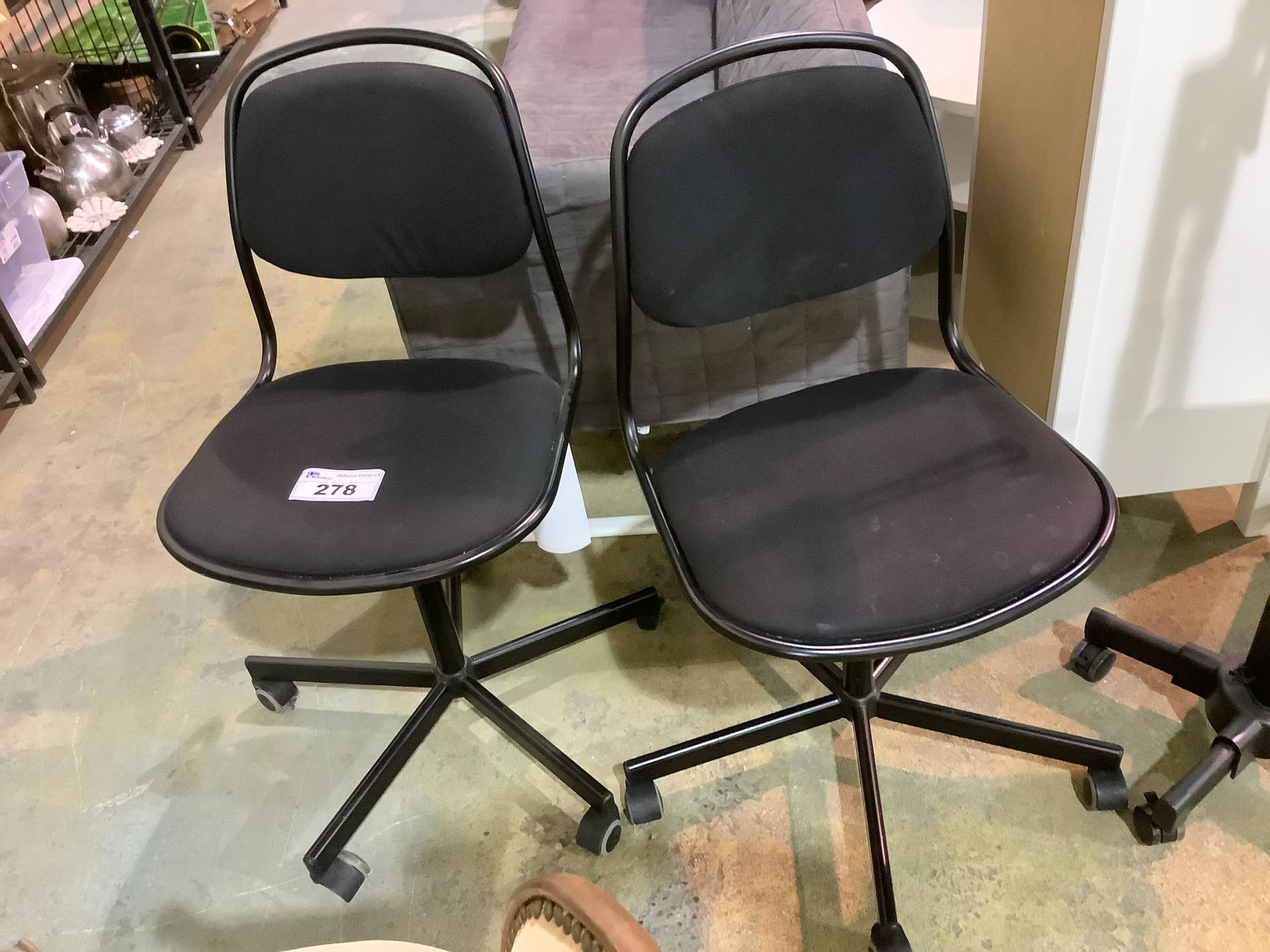 2 ROLLING OFFICE CHAIRS (1 CHAIR MISSING 1 WHEEL)