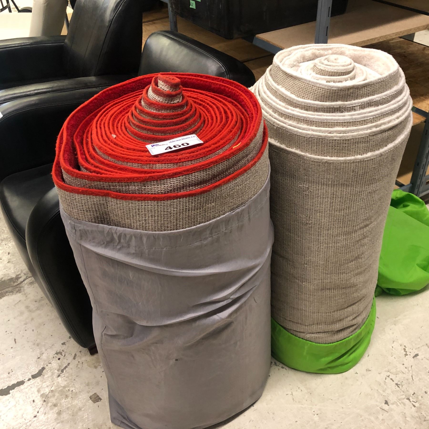 2 ROLLS OF 3' WIDE CARPET RUNNERS, RED AND WHITE ROLLS