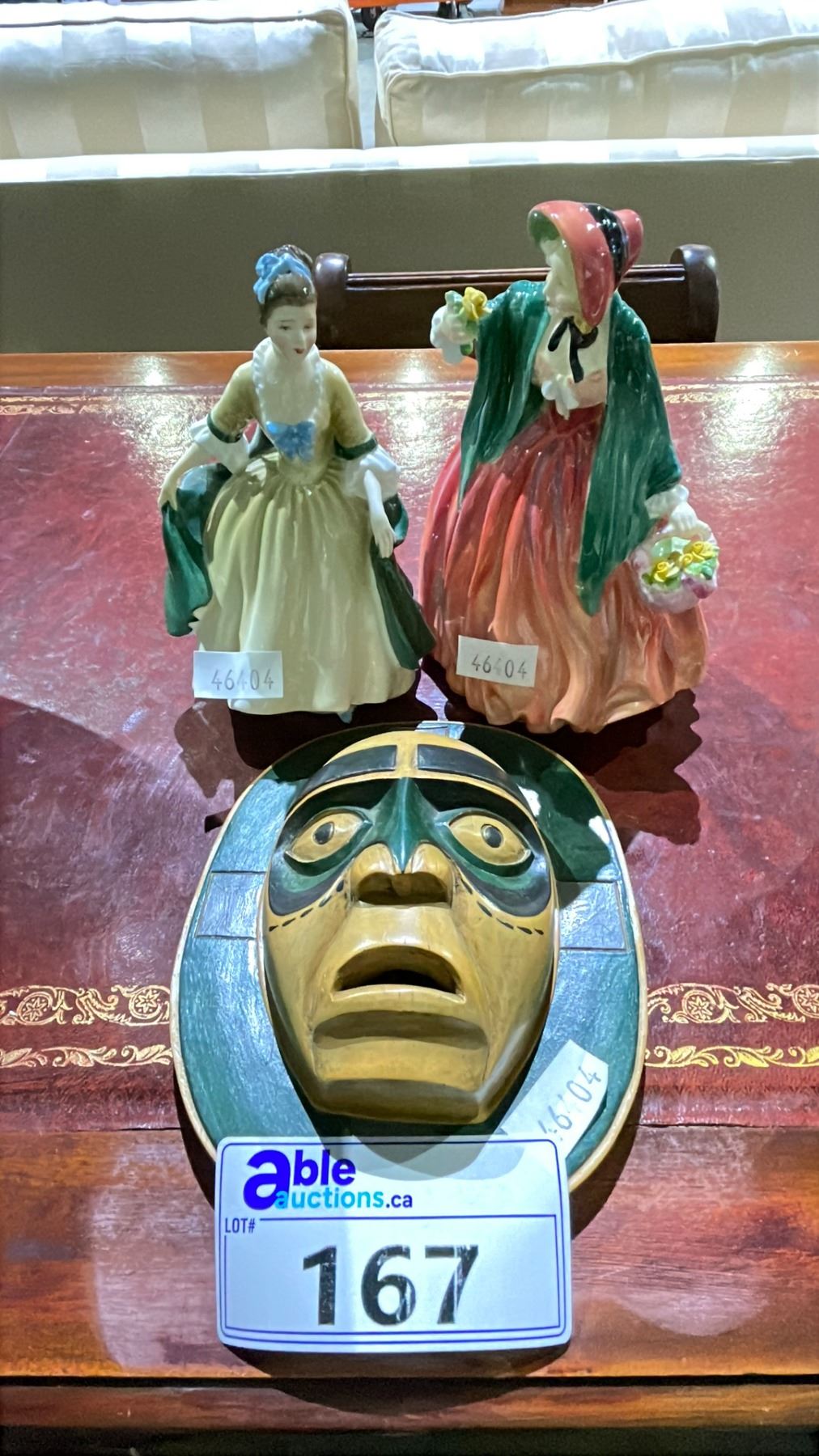 2 ROYAL DOULTON FIGURINES AND MOON MASK