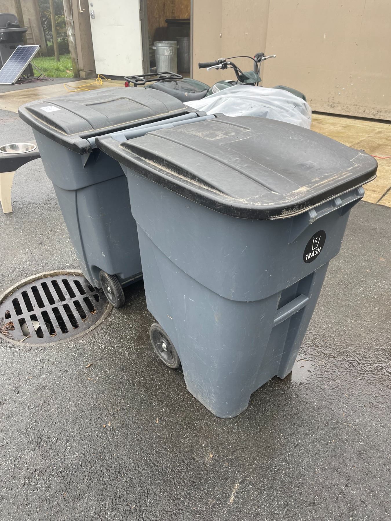 2 RUBBERMAID ROLLING 50 GALLON