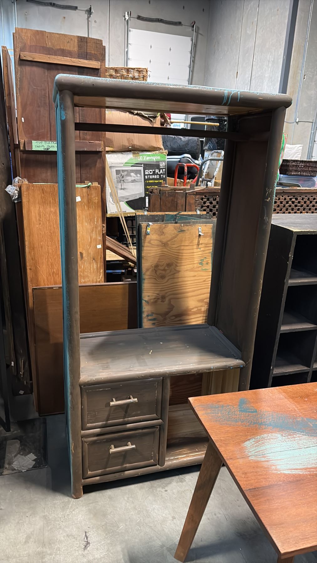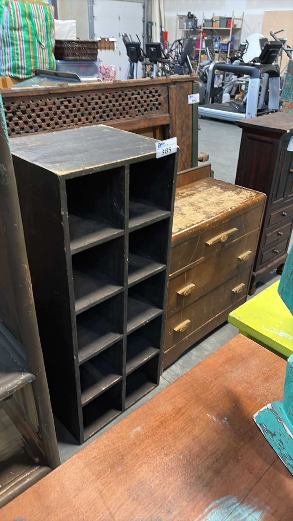 2 RUSTIC DRAWER UNITS AND A 10 CUBBY STORAGE UNIT