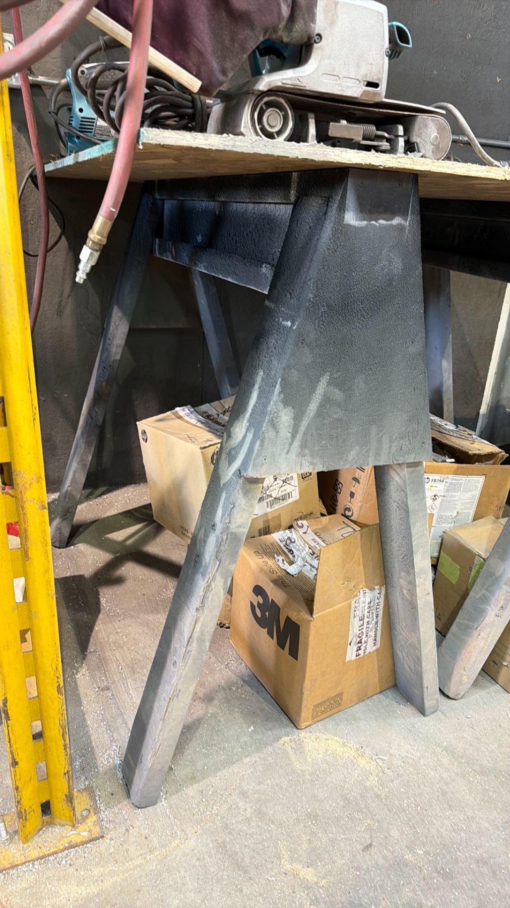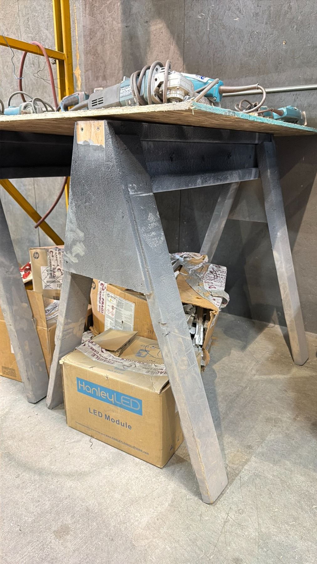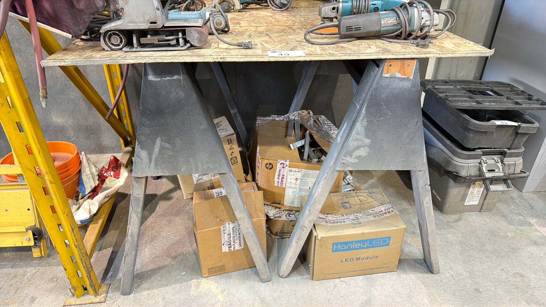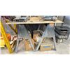 2 SAWHORSES, PIECE OF PLYWOOD AND ASSORTED SCRAP METAL CONTENTS NOT INCLUDED