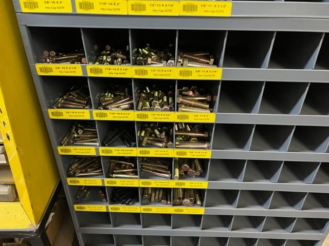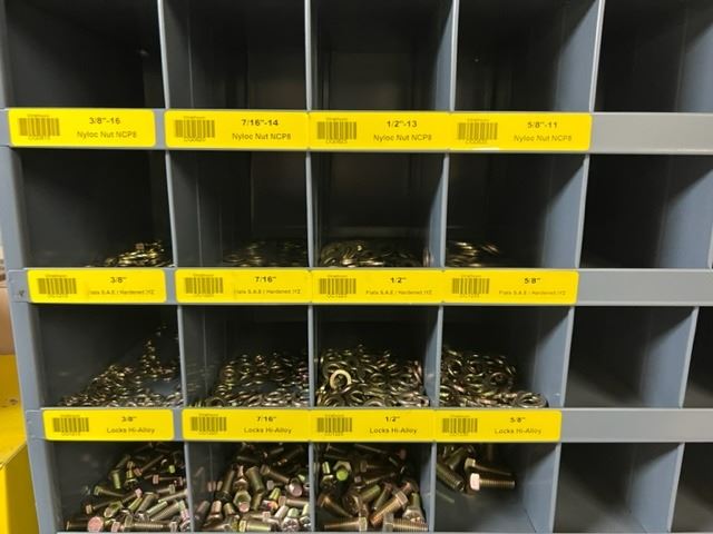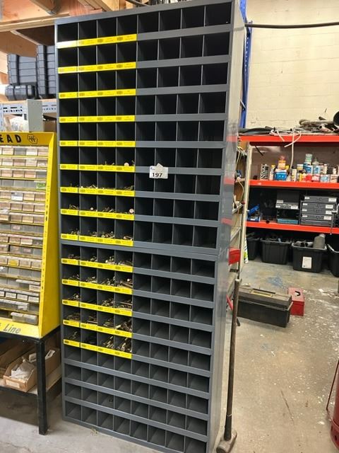 2 SECTIONS OF 34"X42" METAL BINS WITH GRADE 8 BOLTS, NUTS, NYLOCS AND WASHERS 3/8"-5/8"