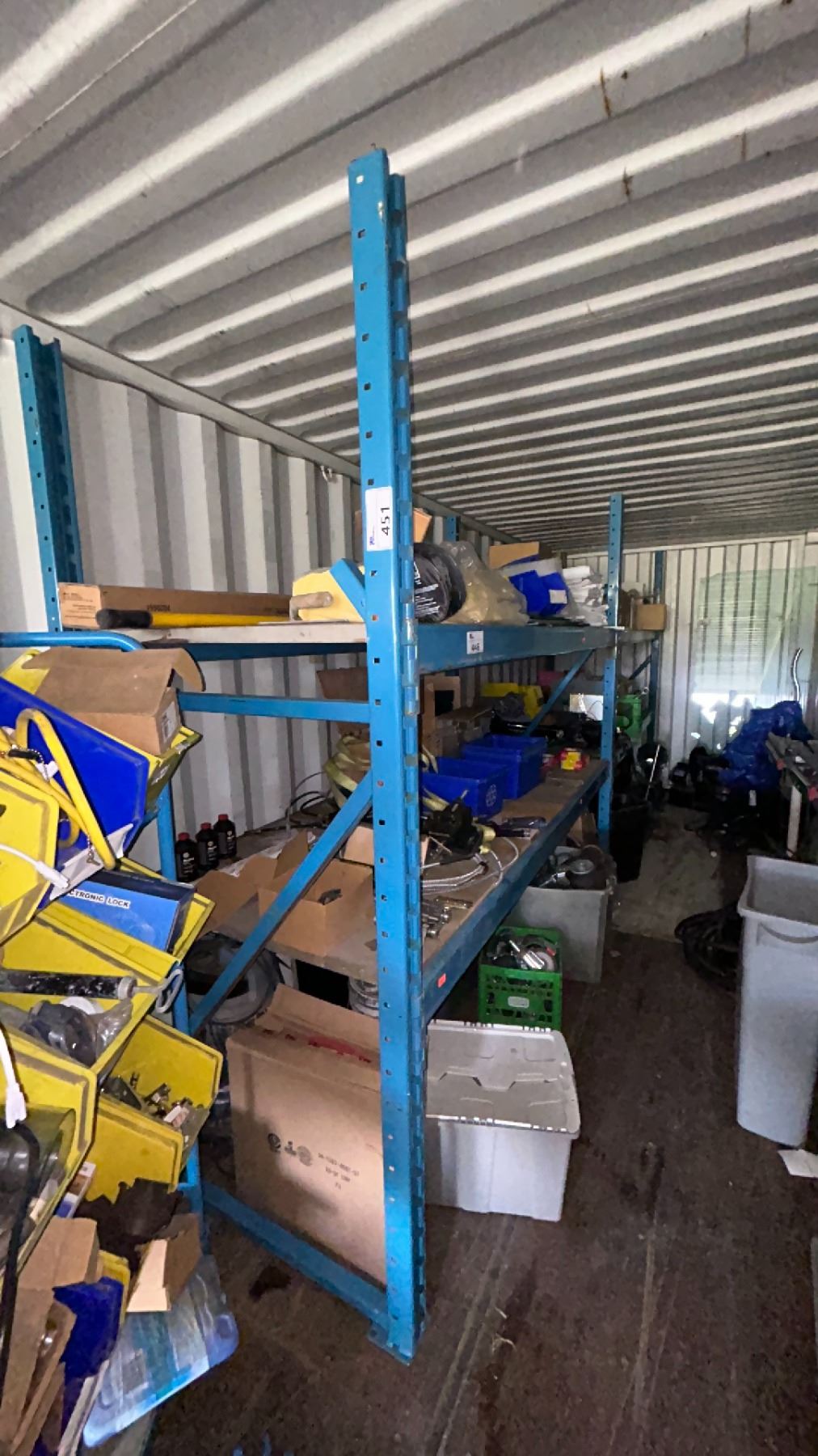 2 SECTIONS OF RACKING LOCATED IN CONTAINER. 3X92" UPRIGHTS, 8X8' BEAMS, WOOD DECKING