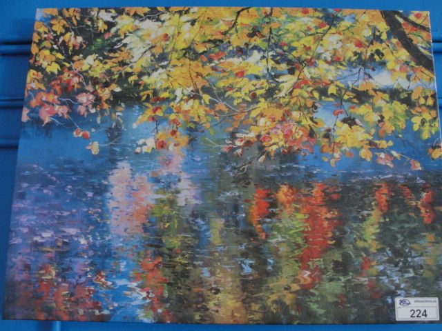 2 SET OIL ON CANVAS TREES OVER THE WATER