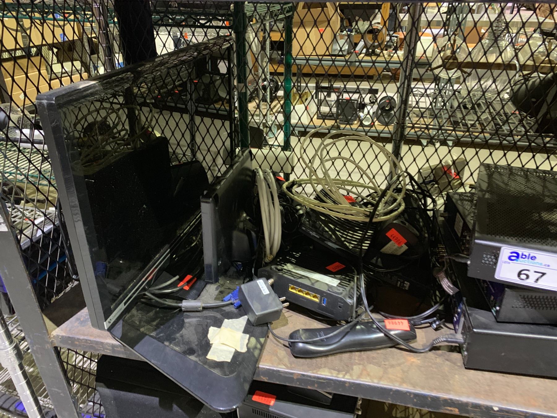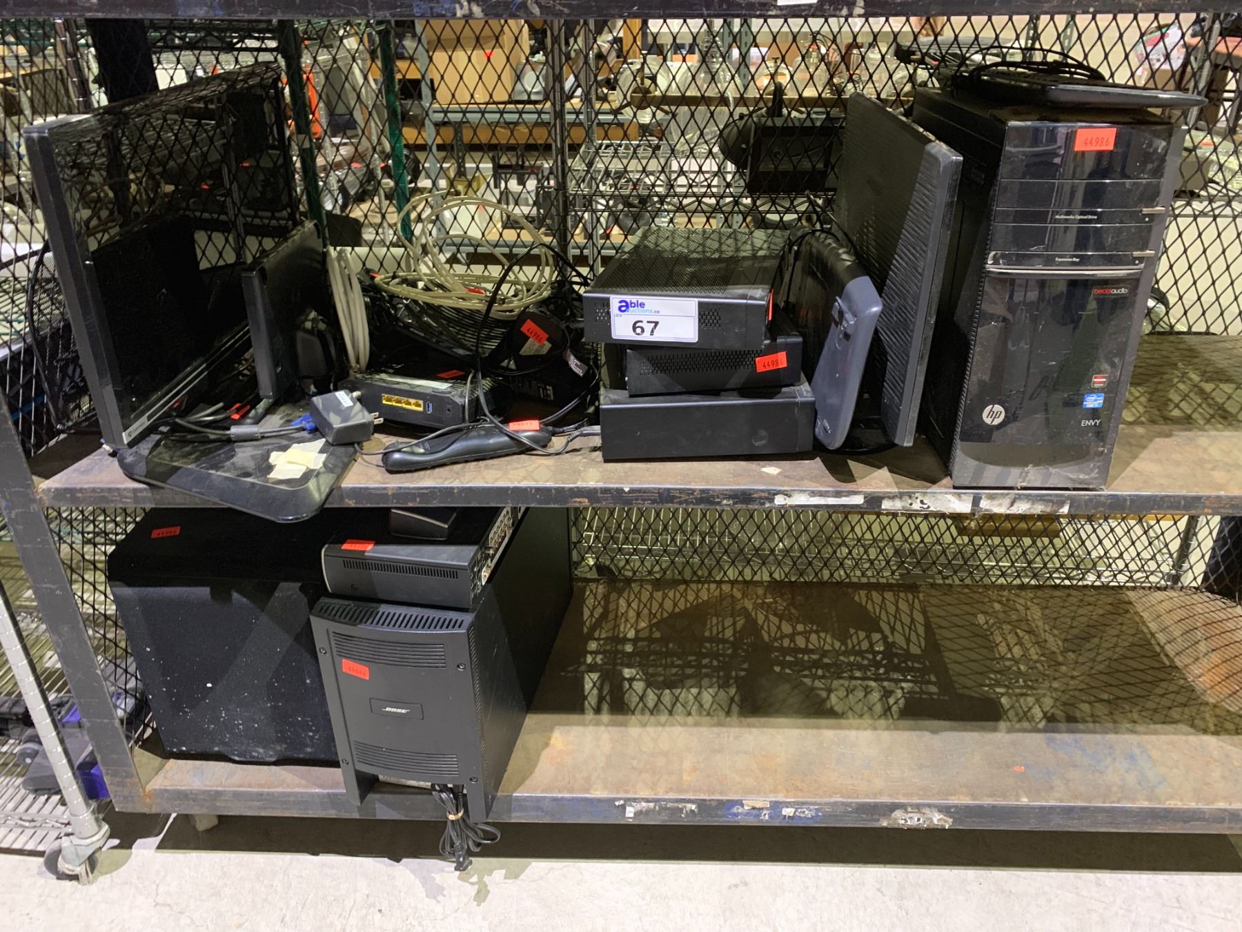 2 SHELVES OF ASSORTED COMPUTER MONITORS, DVRS AND MORE