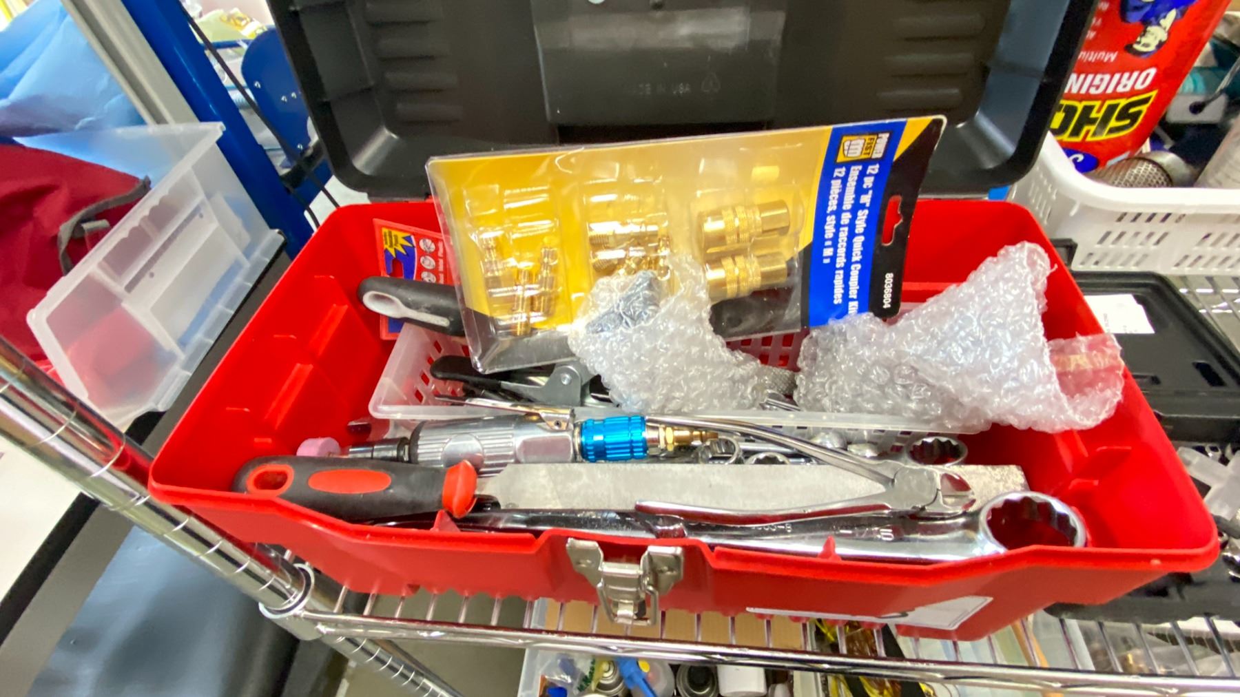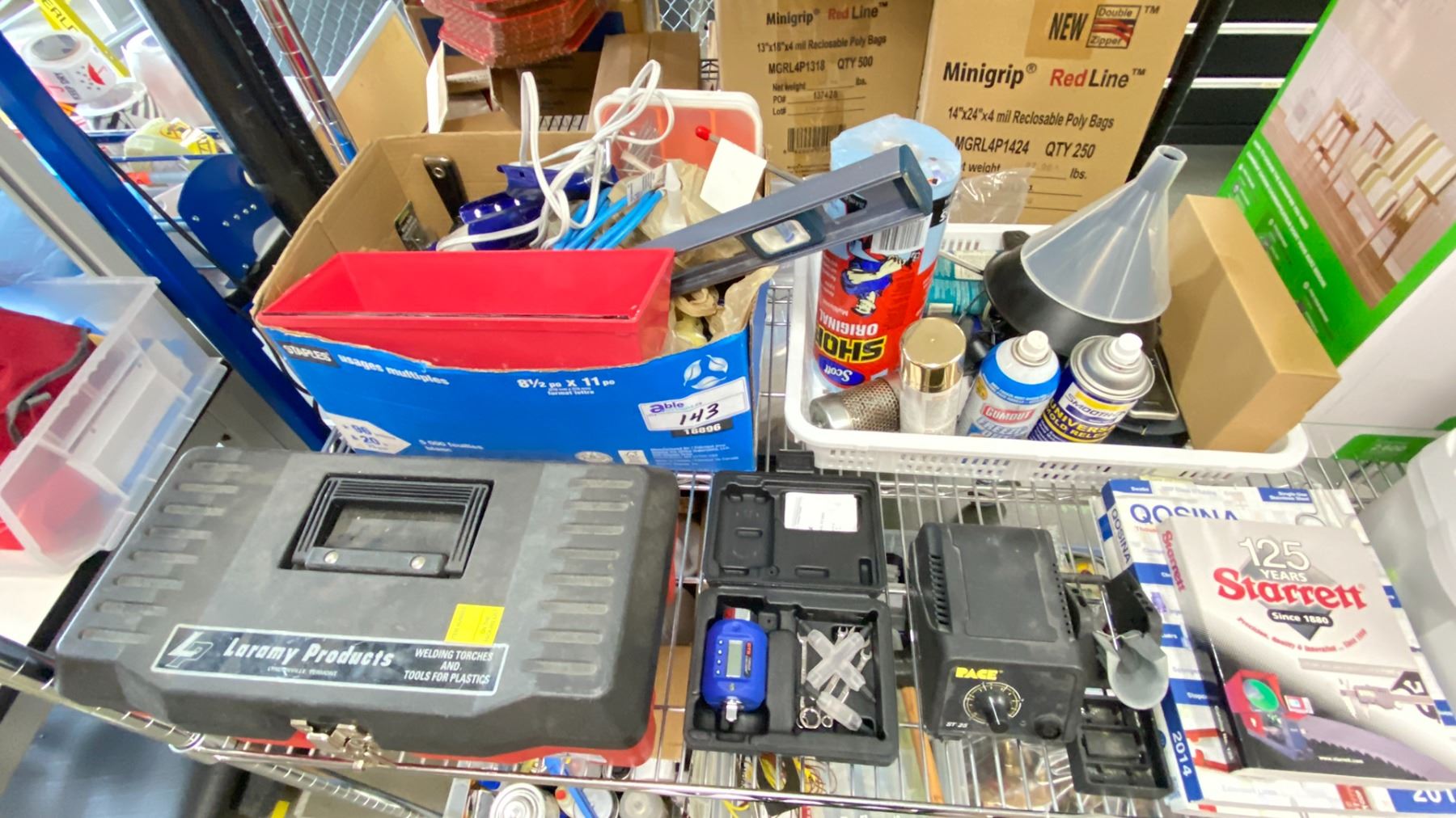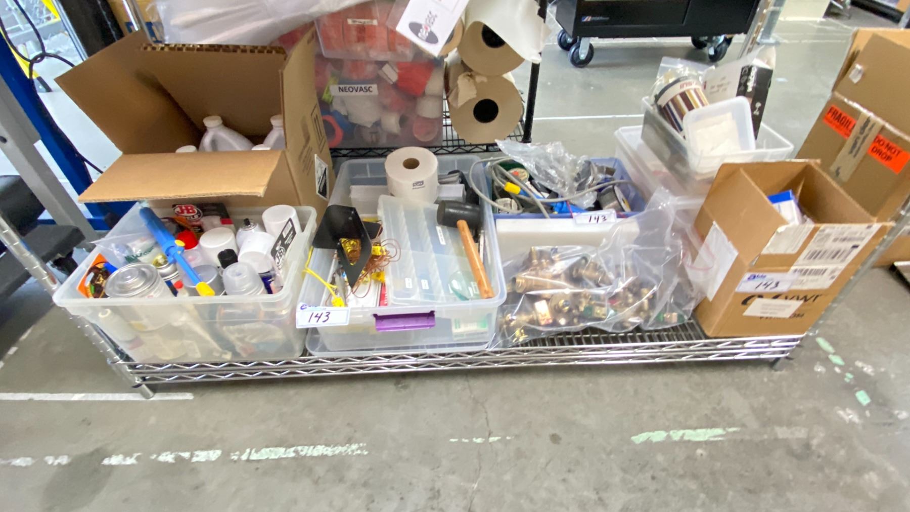 2 SHELVES OF; TOOLS, HARDWARE, FITTINGS, SHOP SUPPLIES ETC