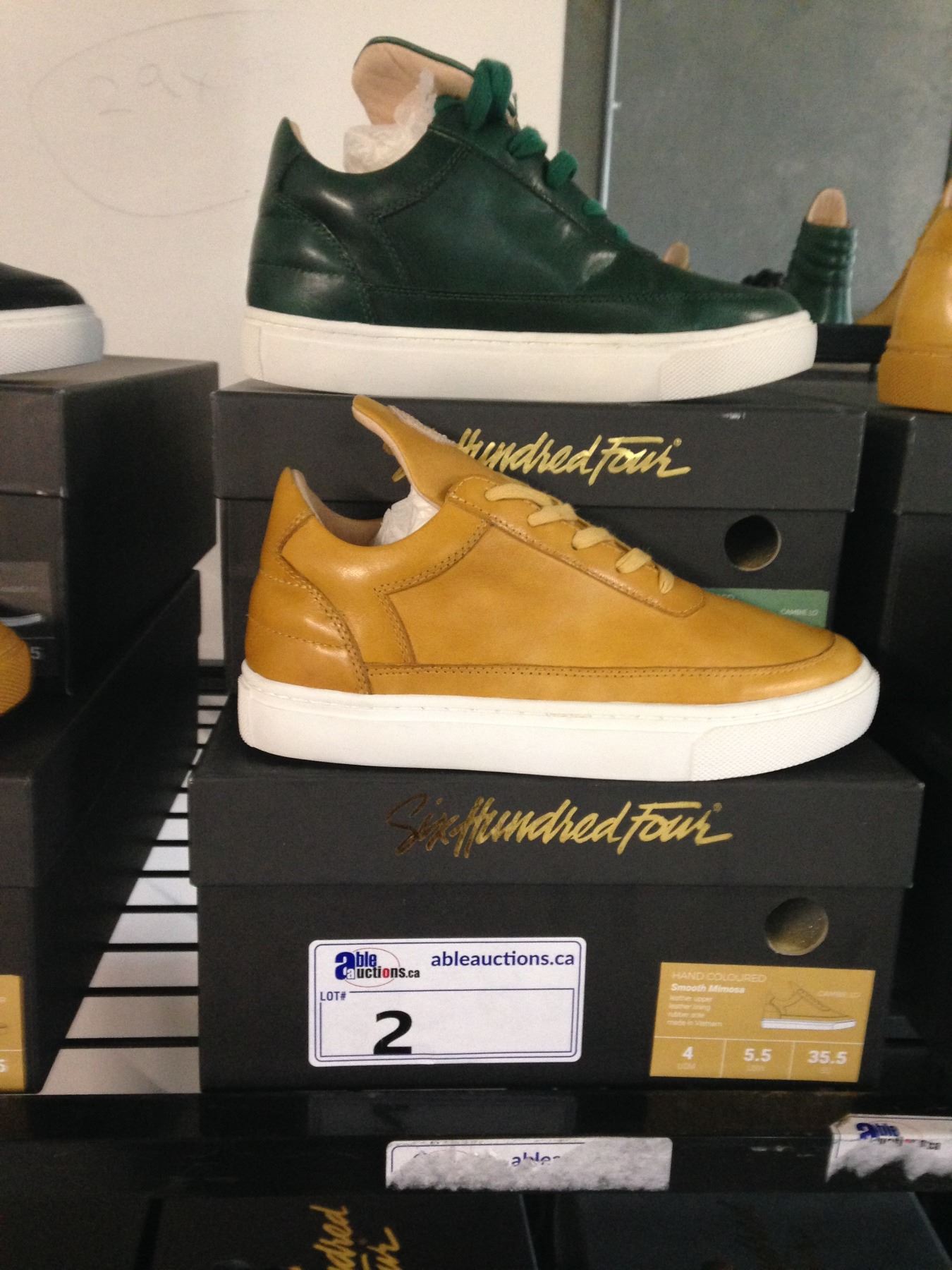 2 SIX HUNDRED FOUR LEATHER UNISEX SHOES SIZE 4 MEN'S IN SMOOTH MIMOSA & SMOOTH IVY $300 RETAIL VALUE EA.