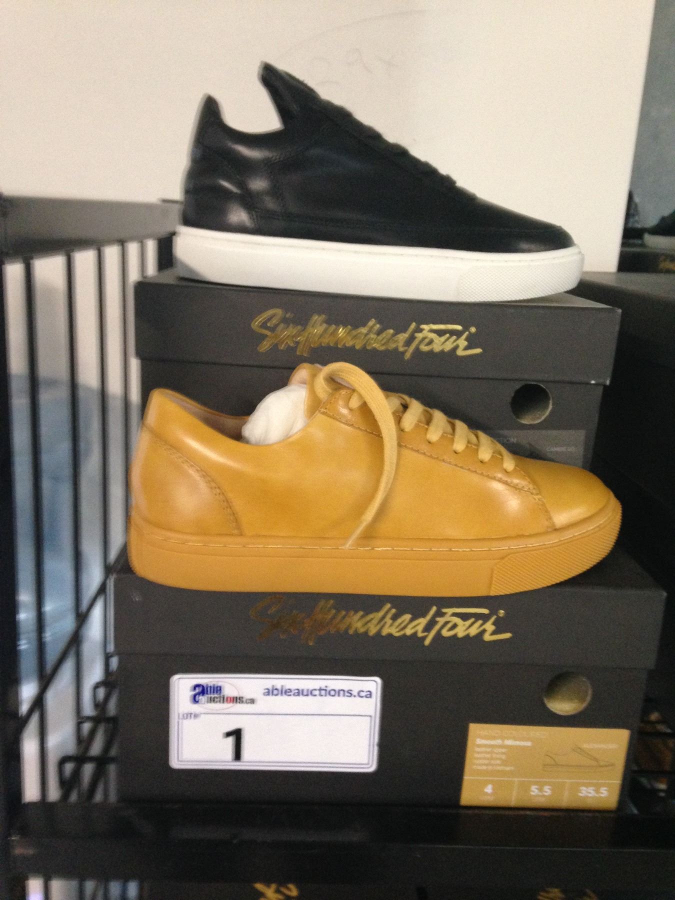 2 SIX HUNDRED FOUR LEATHER UNISEX SHOES SIZE 4 MEN'S IN SMOOTH MIMOSA & SMOOTH RUNWAY $300 RETAIL VALUE EA.