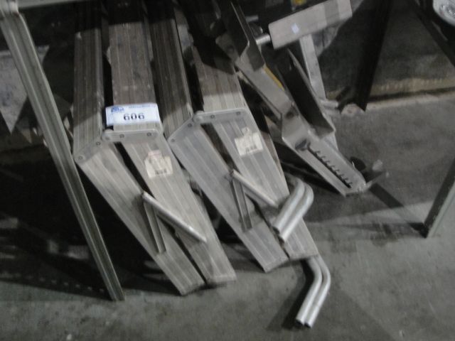 2 SMALL ALUMINUM LADDERS AND SET OF LADDER STANDS