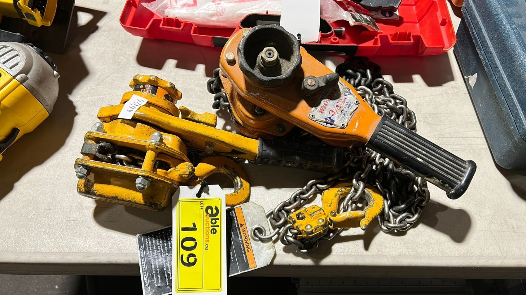 2 SMALL INDUSTRIAL 3/4 TON CHAIN PULLERS