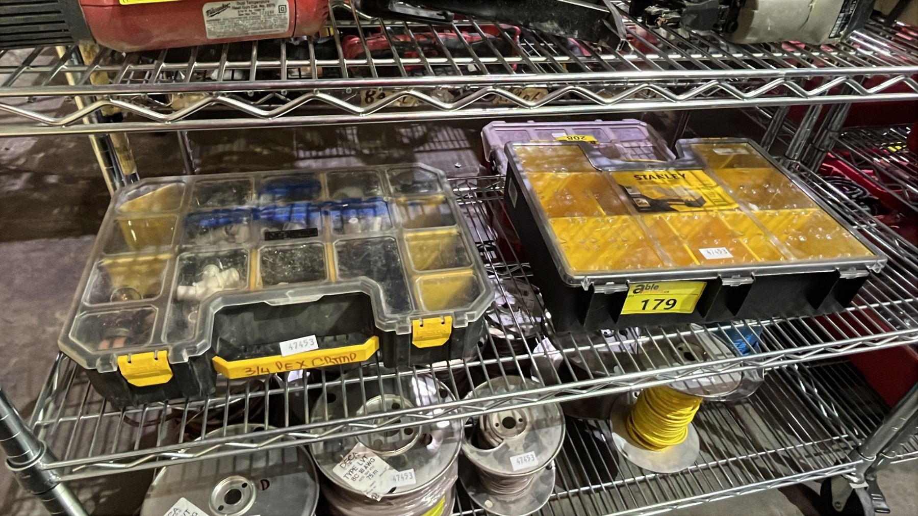 2 SMALL PARTS ORGANIZERS (ONE WITH CONTENTS)