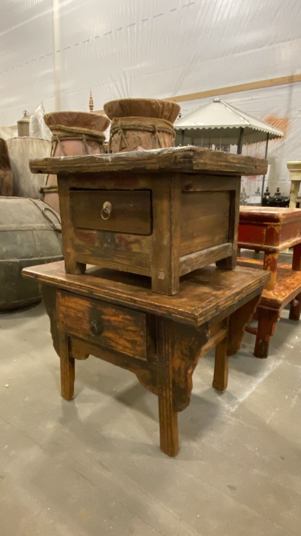 2 SMALL SINGLE DRAWER ASIAN SIDE TABLES