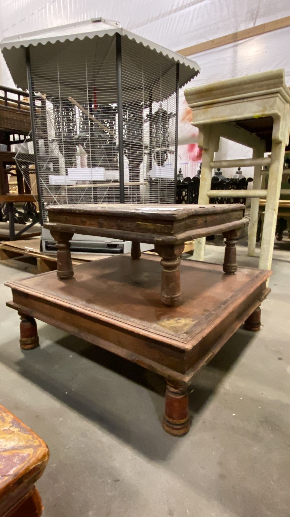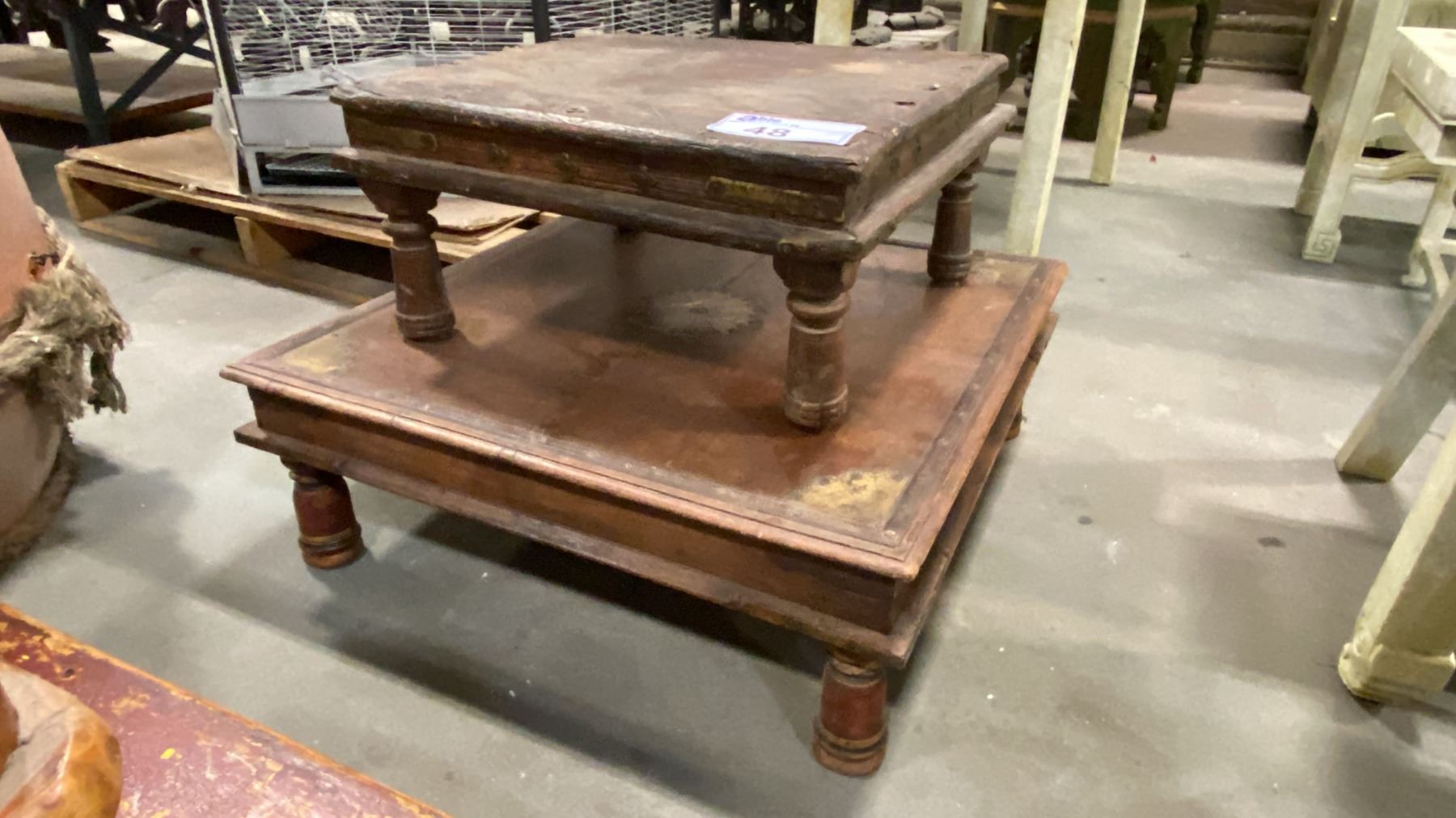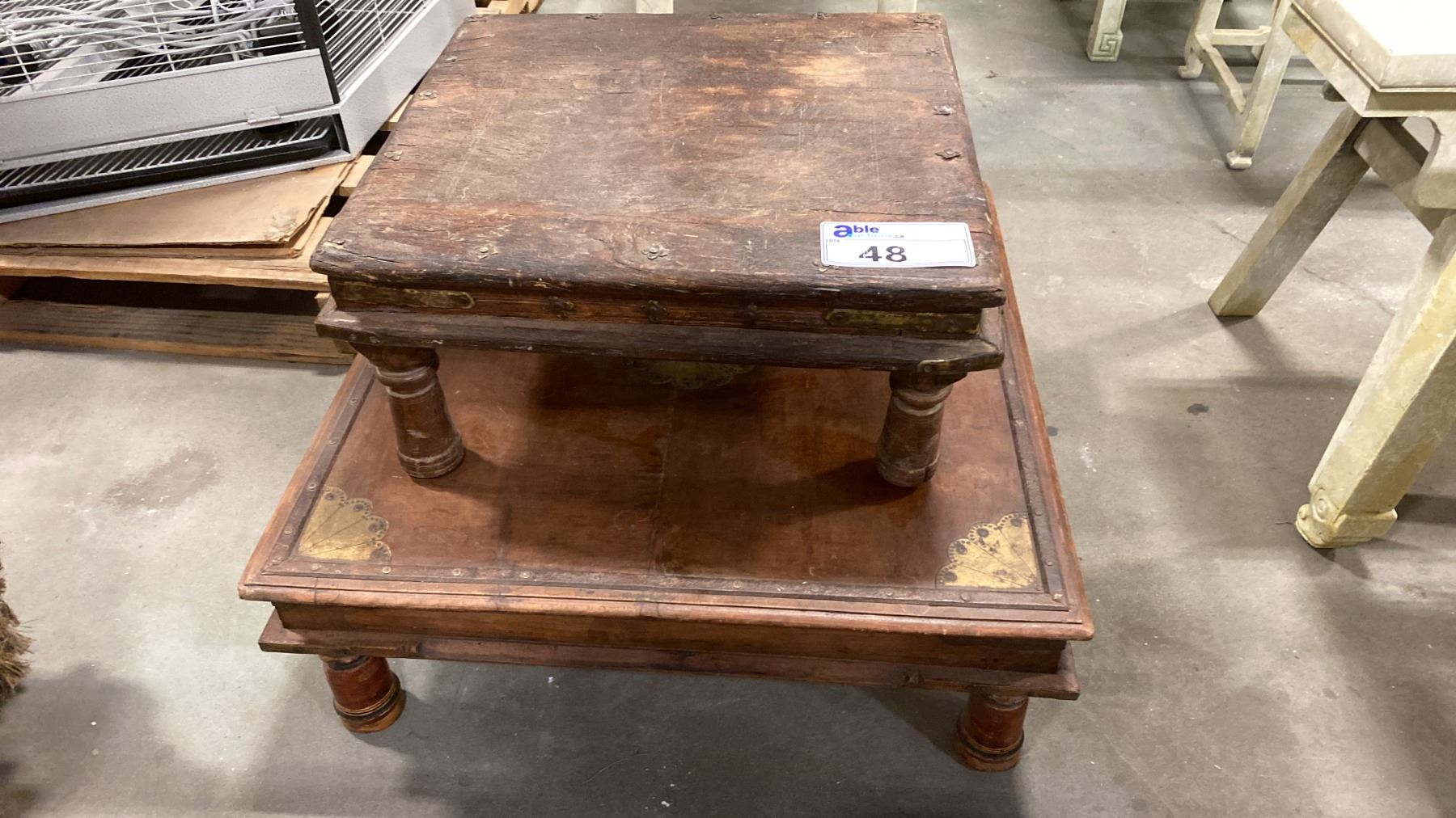 2 SOLID WOOD WITH METAL ACCENTS ASIAN SIDE TABLES
