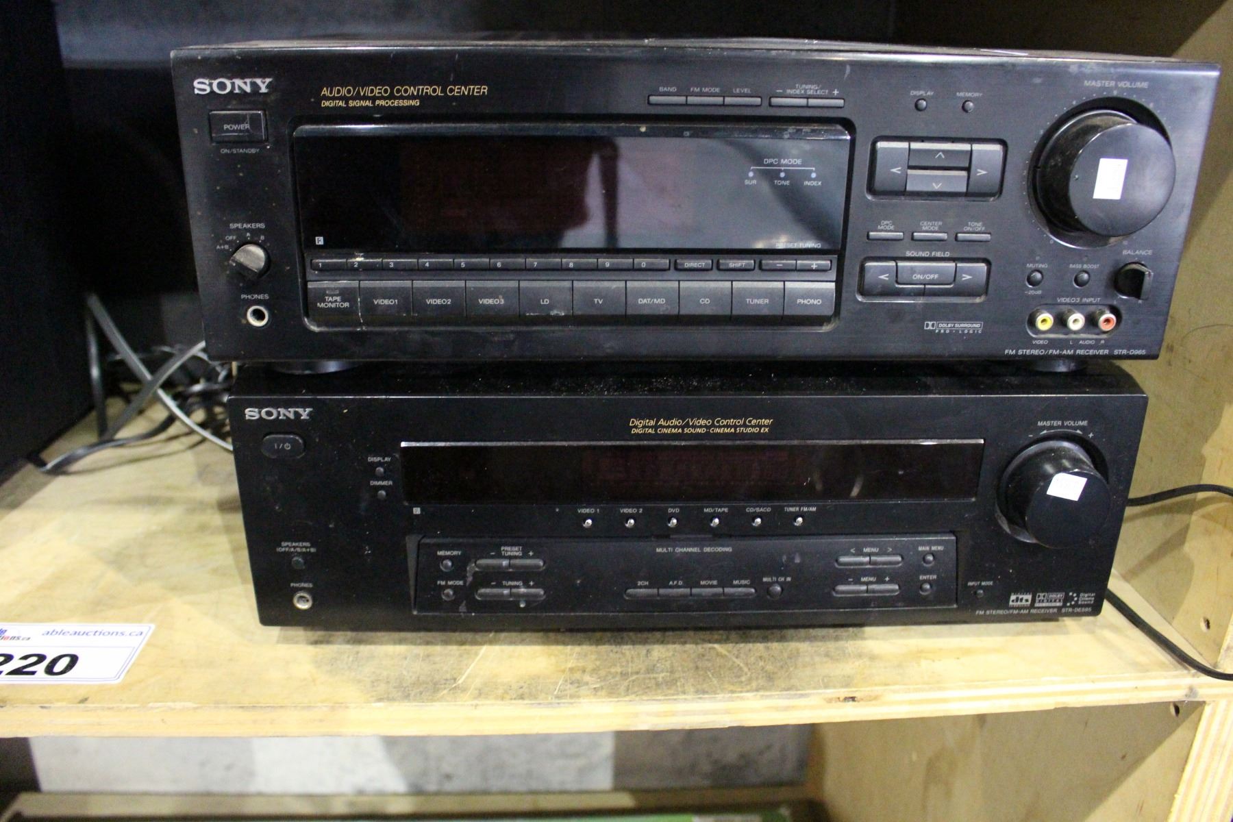2 SONY AUDIO/VIDEO CONTROL CENTERS WITH SONY SPEAKERS AND POLK AUDIO SPEAKER