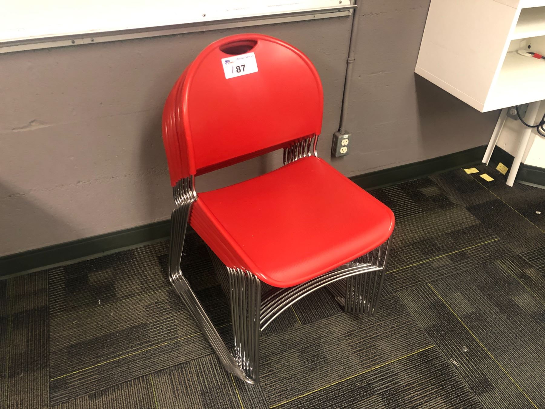2 STACKS OF RED STACKING STUDENT CHAIRS