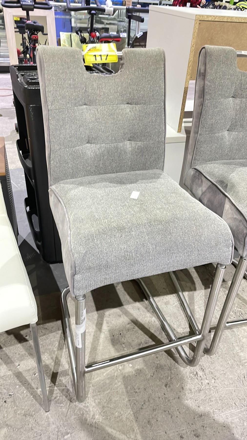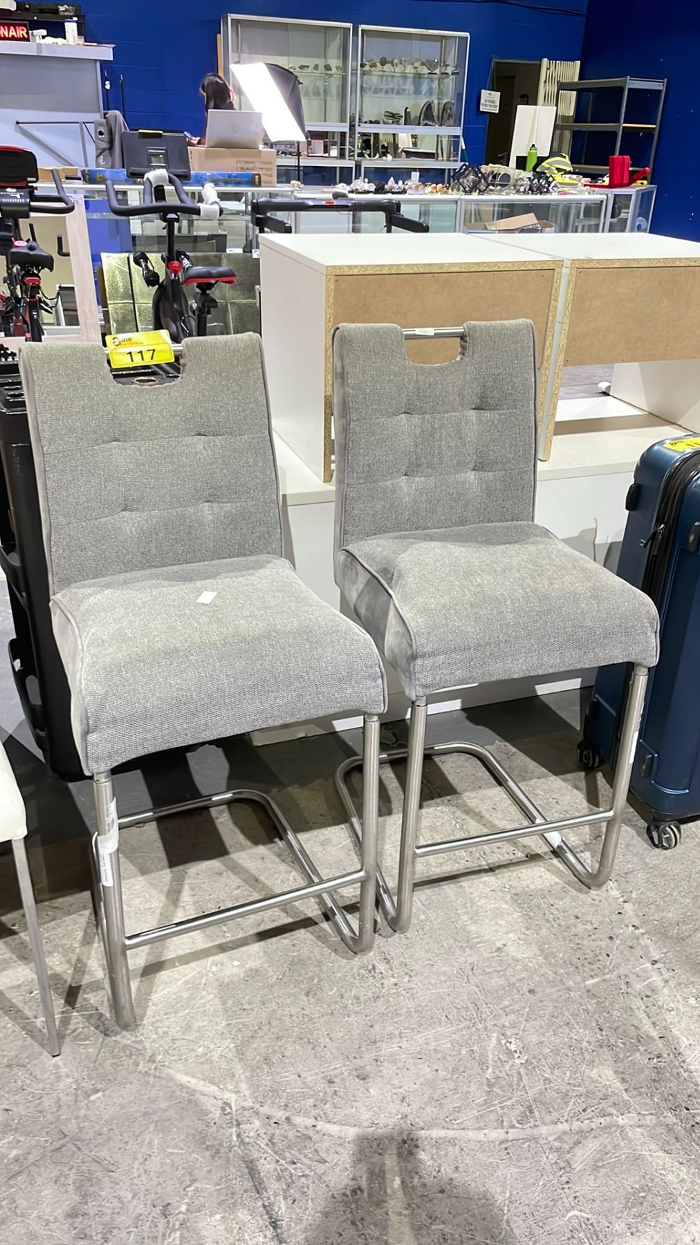 2 STAINLESS STEEL & FABRIC BAR STOOLS