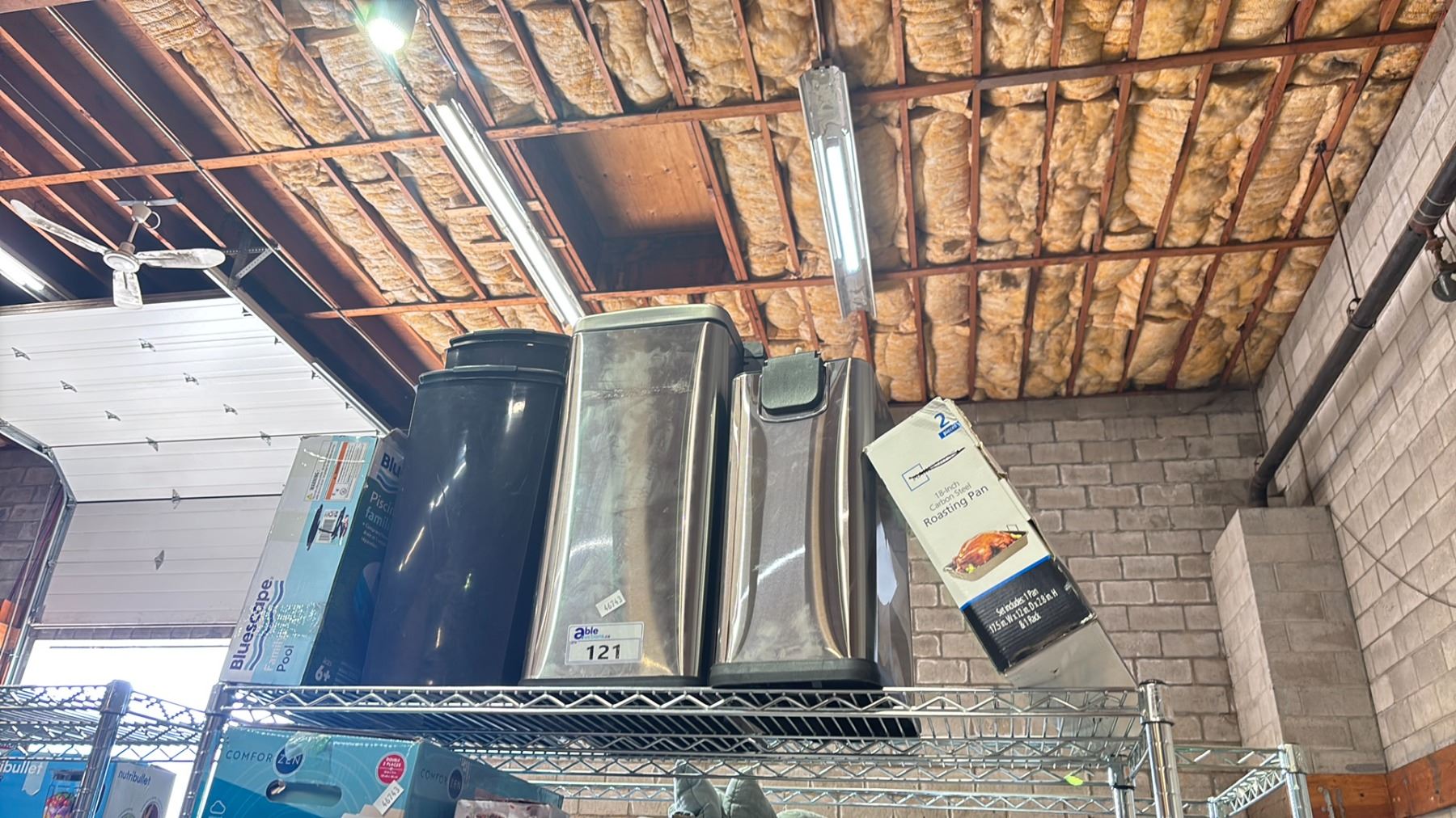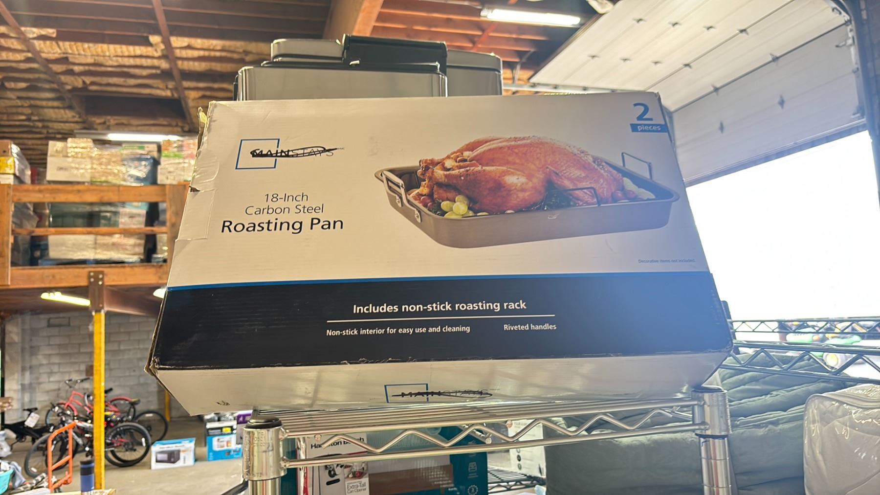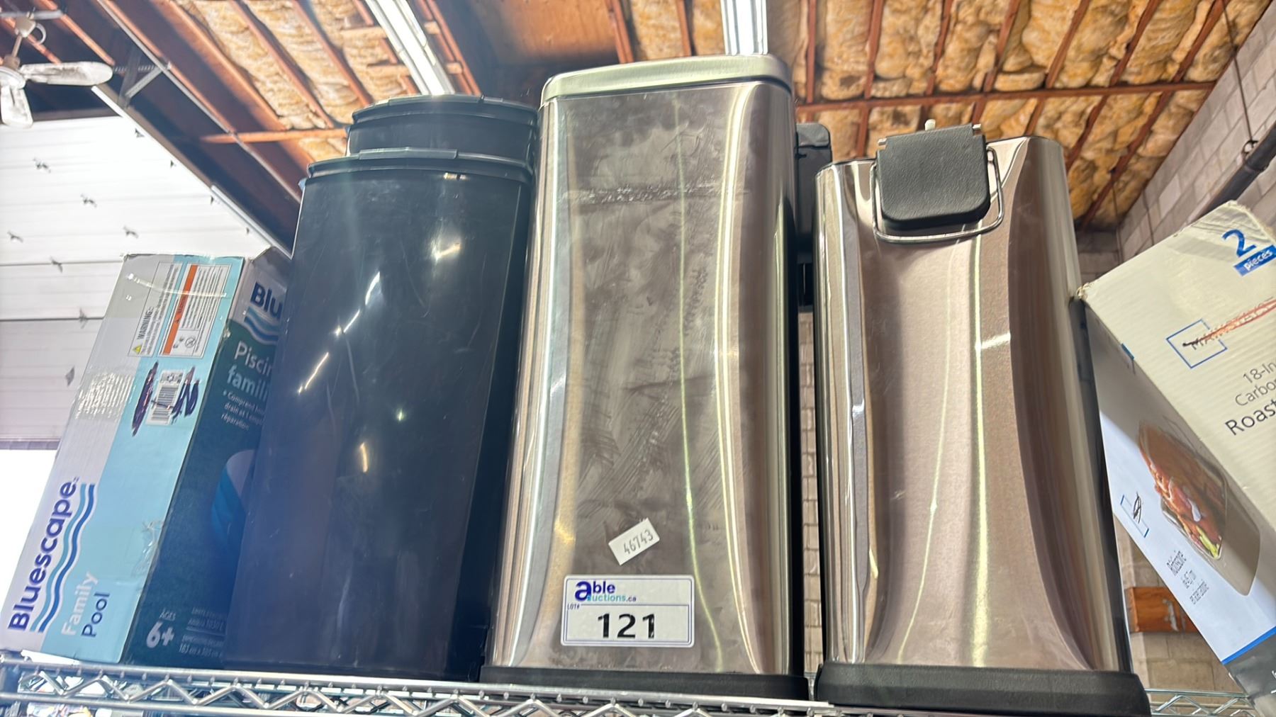2 STAINLESS STEEL WASTE RECEPTACLES BLUESCAPE FAMILY POOL & A MAINSTAYS 18" CARBON STEEL ROASTING PAN & MORE