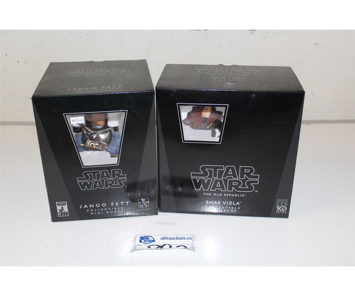 2 STAR WARS- JANGO FETT & SHAE VIZLA COLLECTIBLE MINI BUST, NEW IN BOX