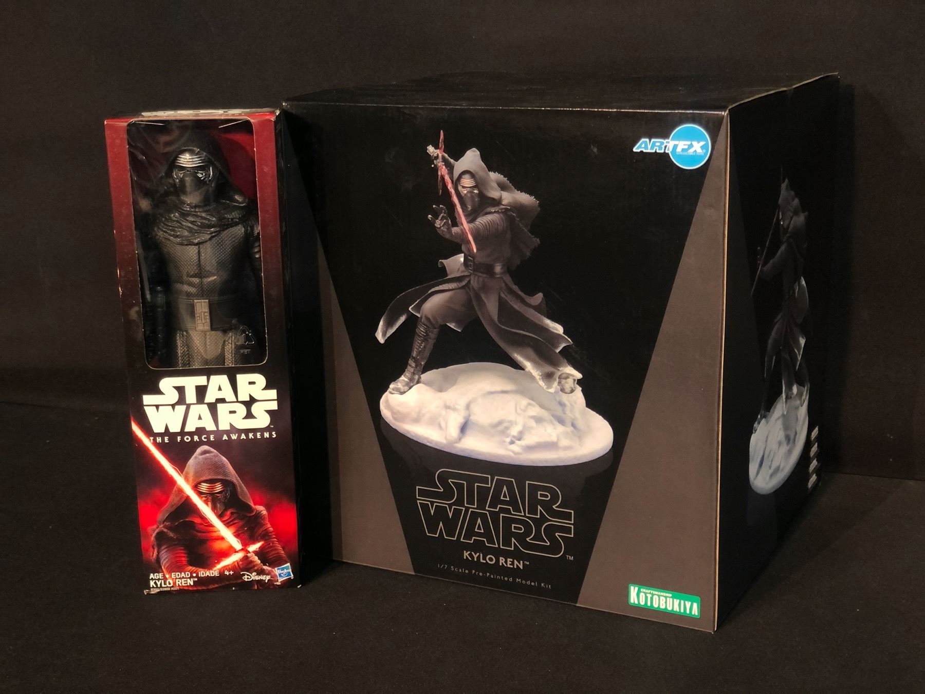 2 STAR WARS KYLO REN FIGURINES INC. KOTOBUKIYA PAINTED FIGURINE AND DISNEY FIGURINE, BOTH IN ORIGINAL PACKAGING