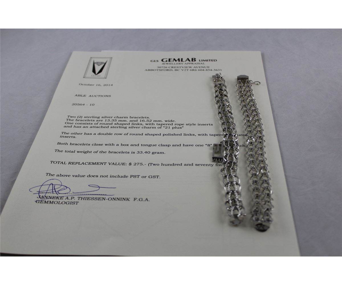 2 STERLING SILVER CHARM BRACELETS. TOTAL REPLACEMENT VALUE:$275.00
