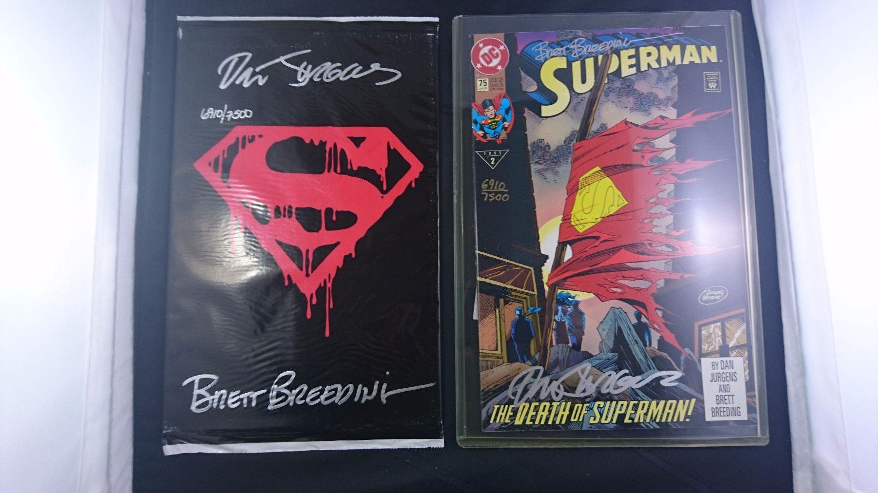 2 SUPERMAN COMICS SIGNED BY BRETT BREEDING ILLUSTRATOR