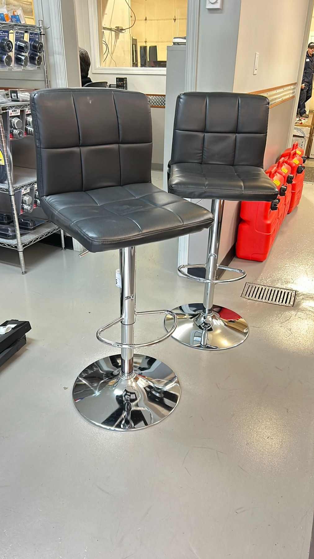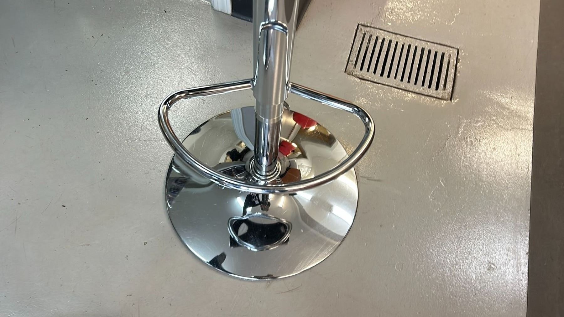 2 SWIVEL BAR STOOLS WITH CHROME BASES. HEIGHT RANGE 24-31"