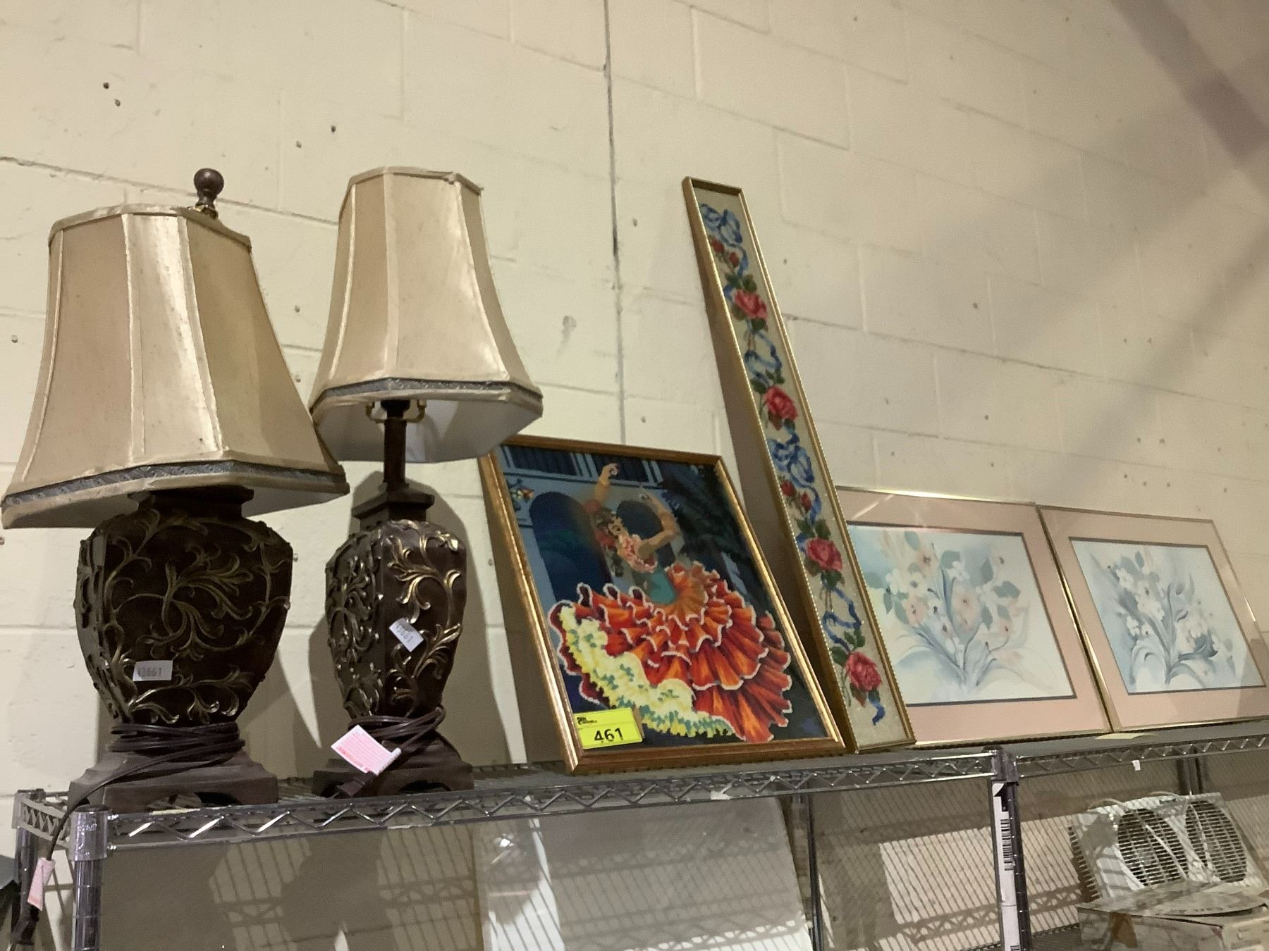 2 TABLE LAMPS, 4 ASSORTED PICTURES,