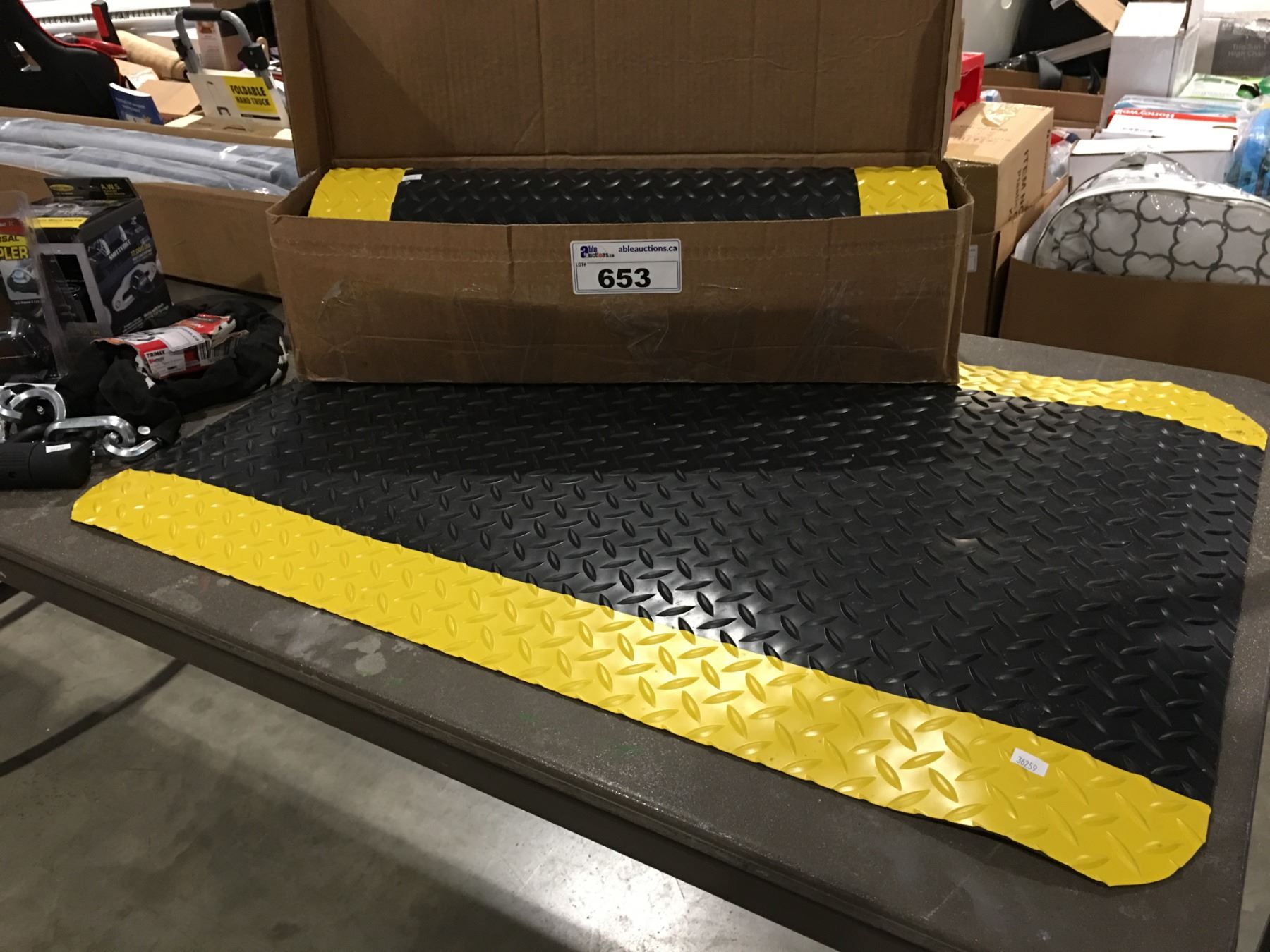 2 THICK RUBBER WORKSHOP FLOOR MATS - BLACK & YELLOW