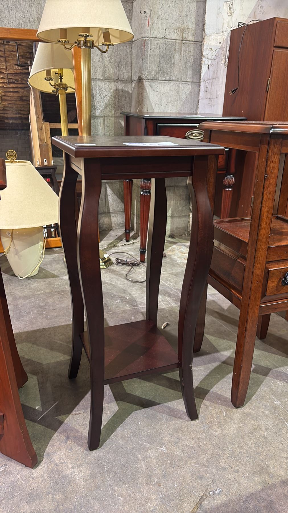 2-TIER CHERRY WOOD FINISH SMALL PLANT STAND 12" X 12" X 28"