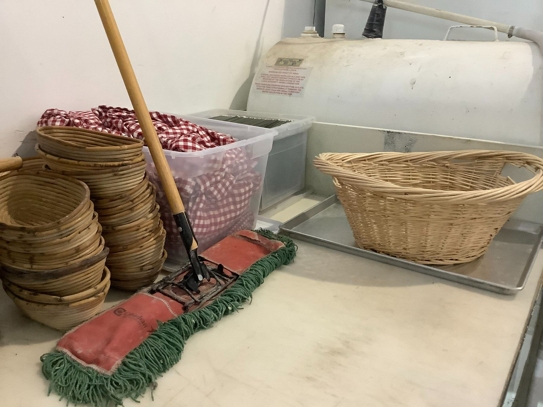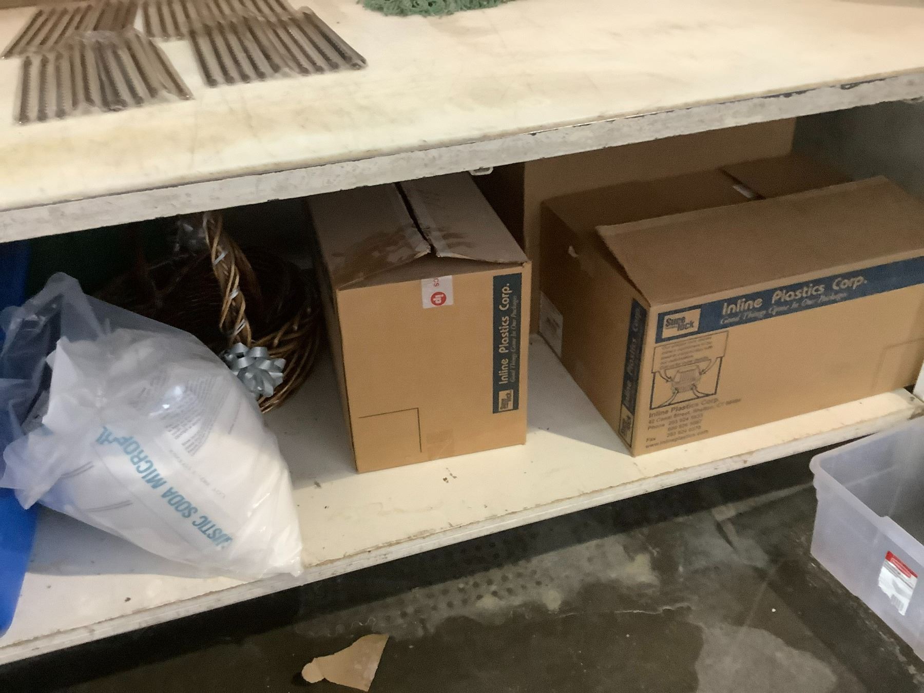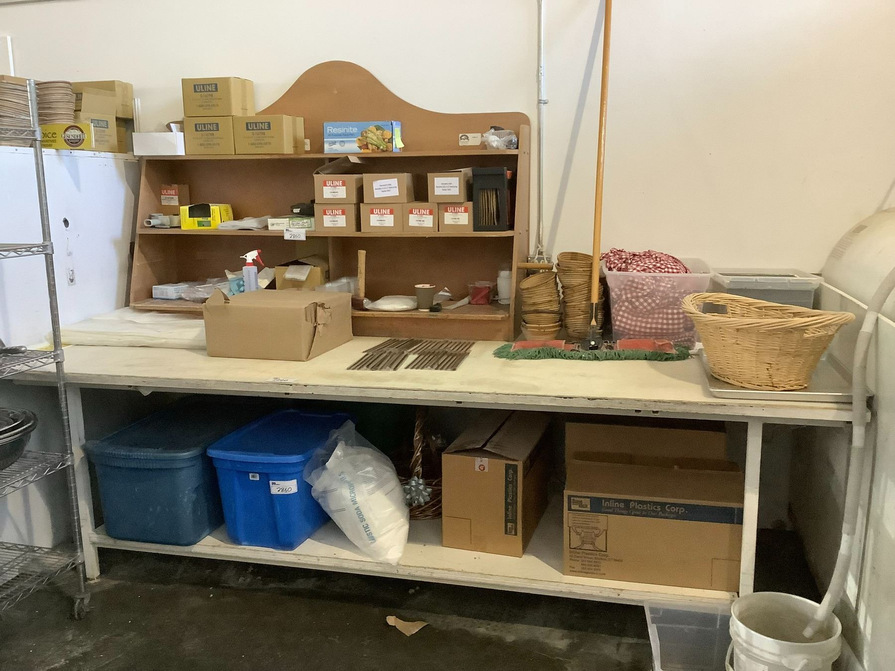 2 TIER METAL & WOOD PREP TABLED WITH ALL CONTENTS ON TOP & BOTTOM 120"X48"X36"H