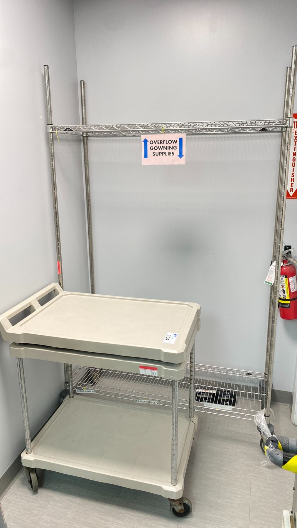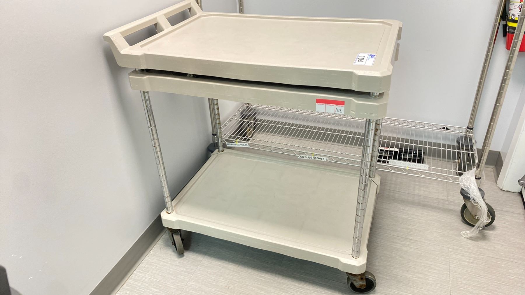 2 TIER METRO RACK AND 3 TIER CART (MIDDLE SHELF PUSHED UP TOP)