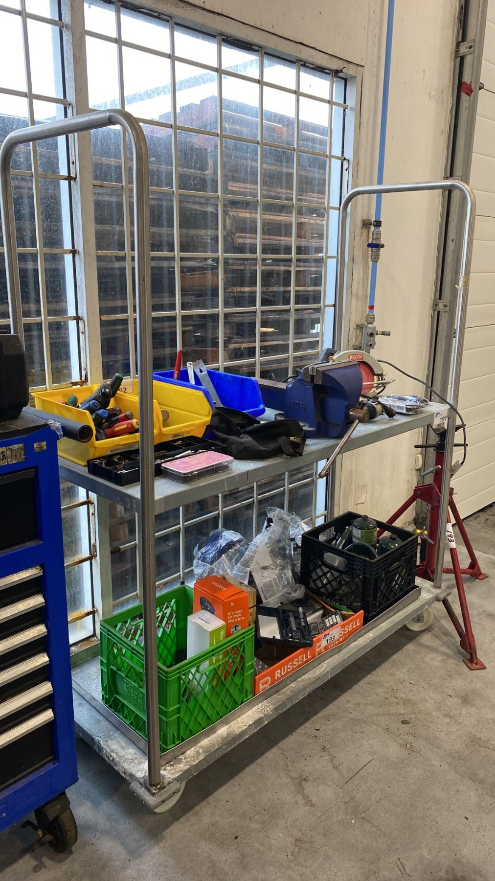 2 TIER MOBILE METAL SHELF UNIT *CONTENTS ARE NOT INCLUDED*