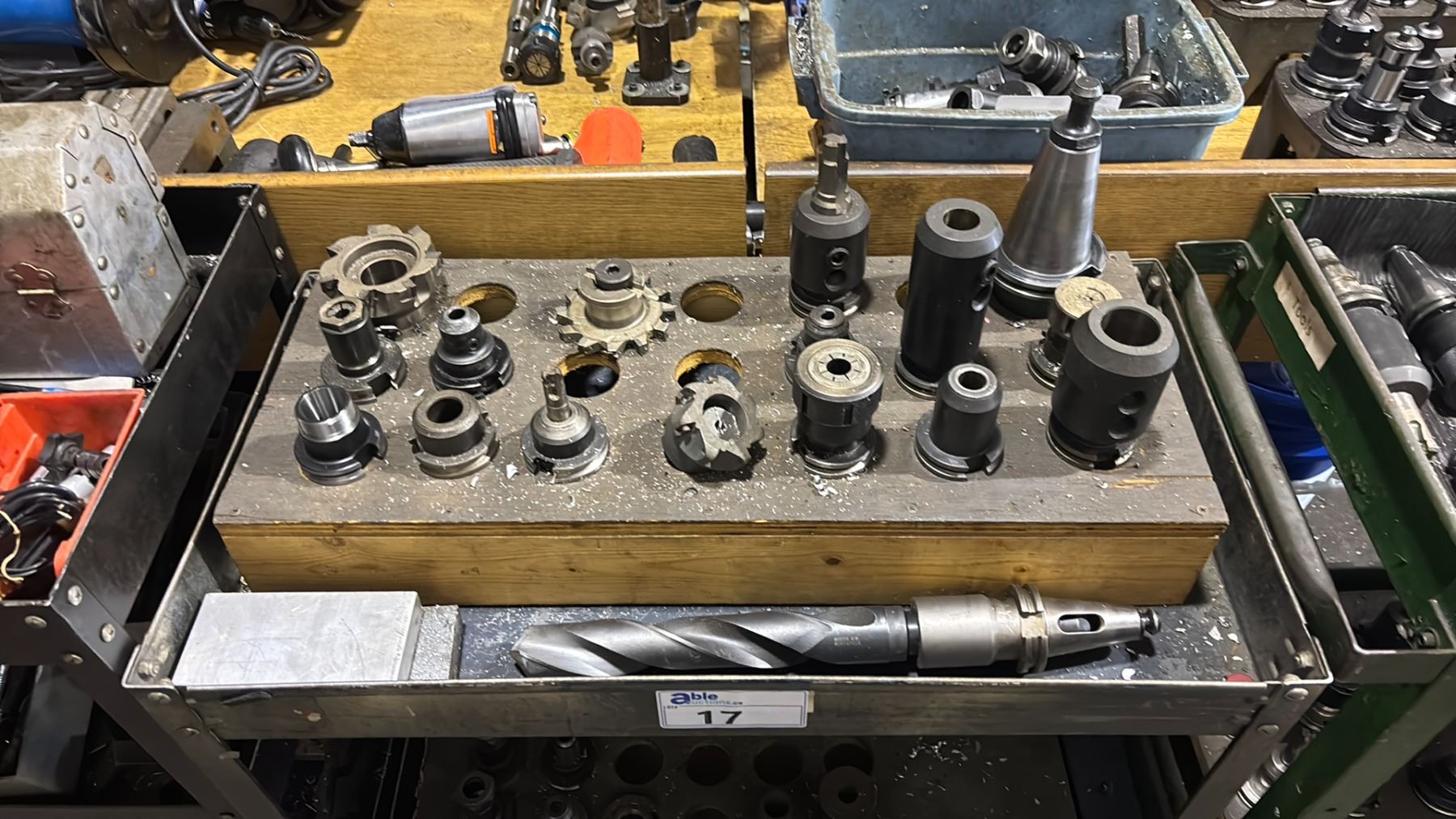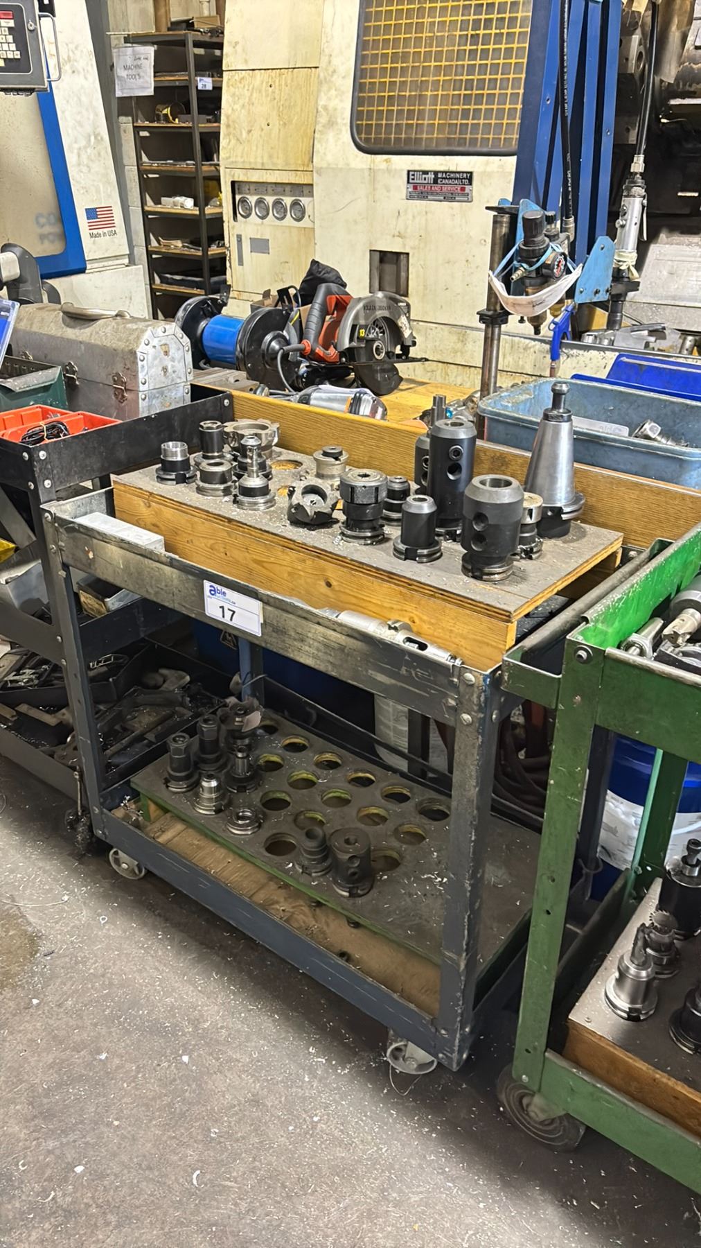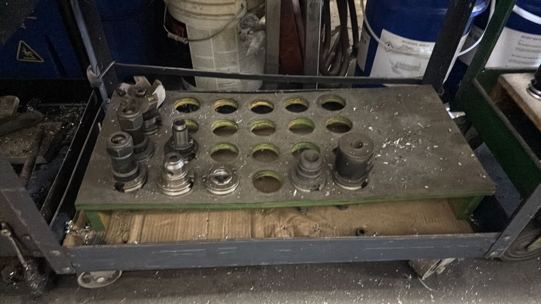 2 TIER MOBILE PRODUCT CART WITH ASSORTED COMMERCIAL INDUSTRIAL CNC MACHINE TOOLING / HEADS *CART INCLUDED*