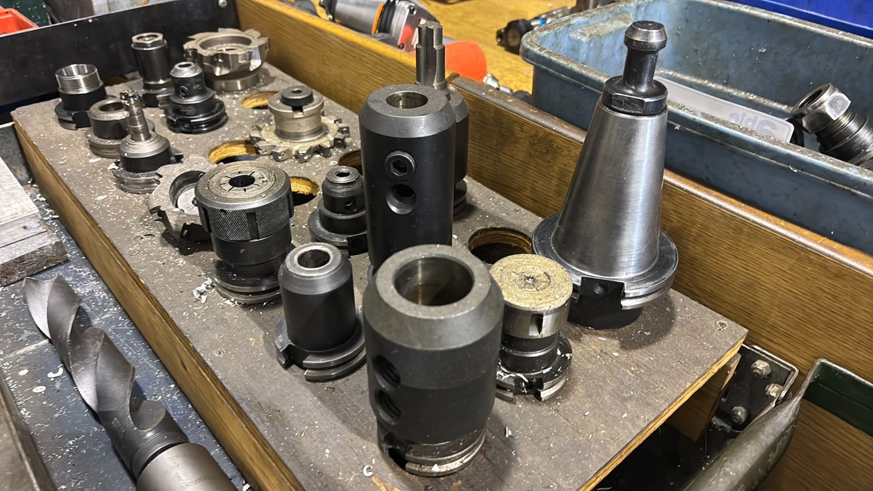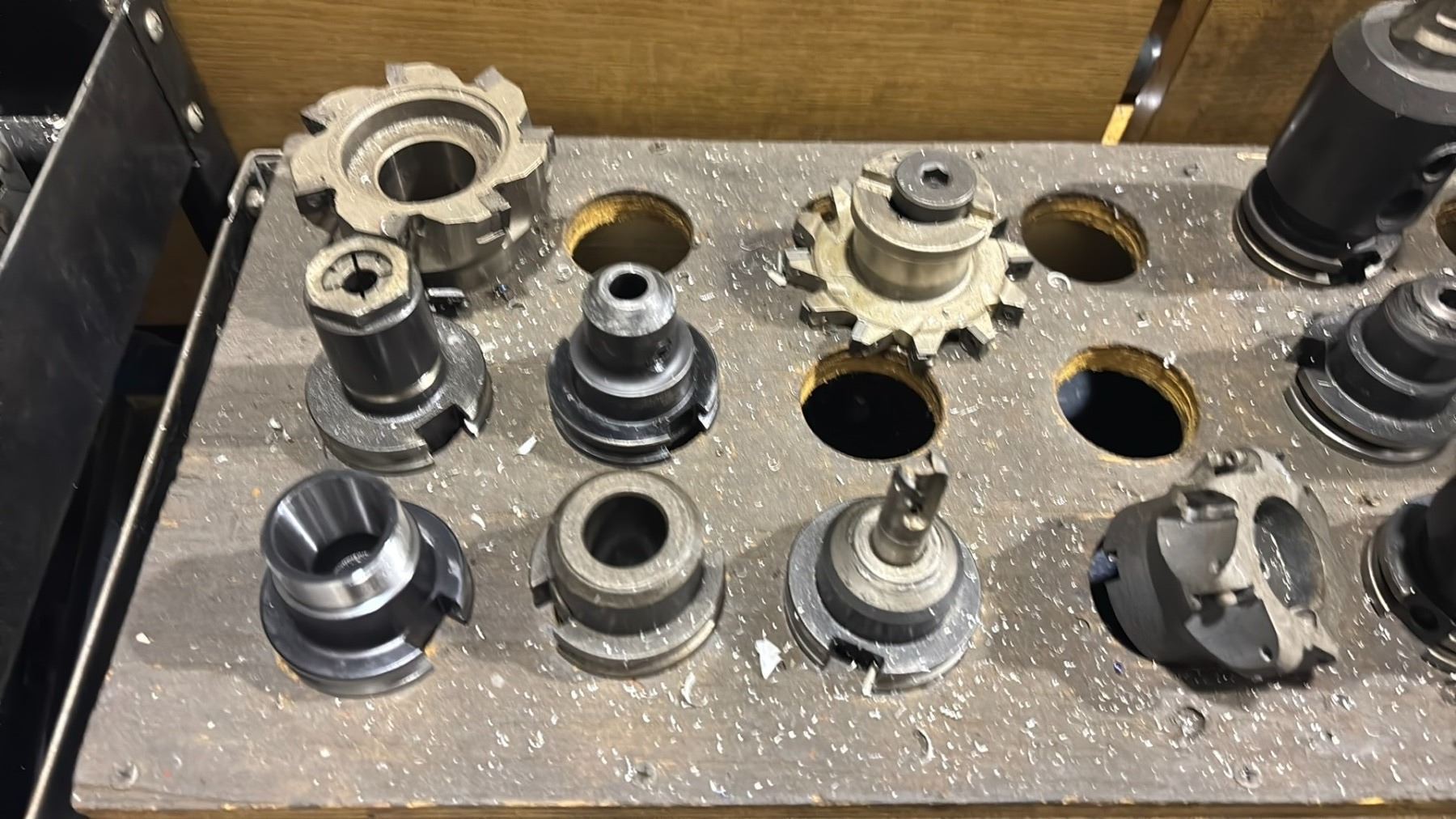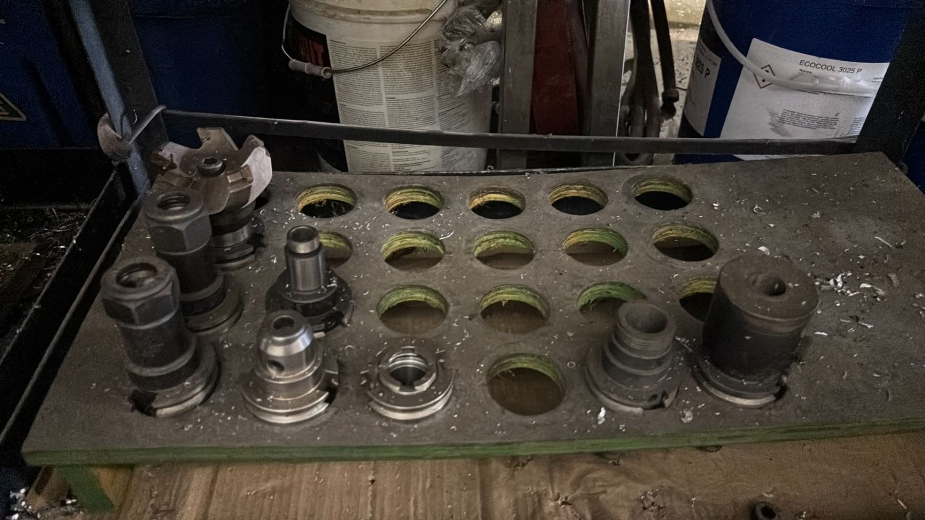 2 TIER MOBILE PRODUCT CART WITH ASSORTED COMMERCIAL INDUSTRIAL CNC MACHINE TOOLING / HEADS *CART INCLUDED*