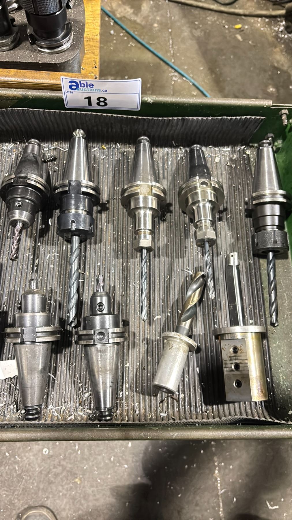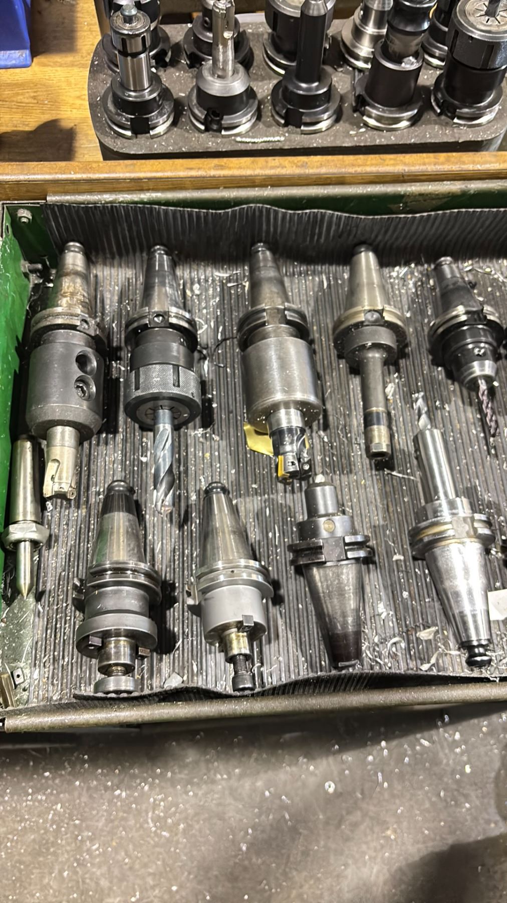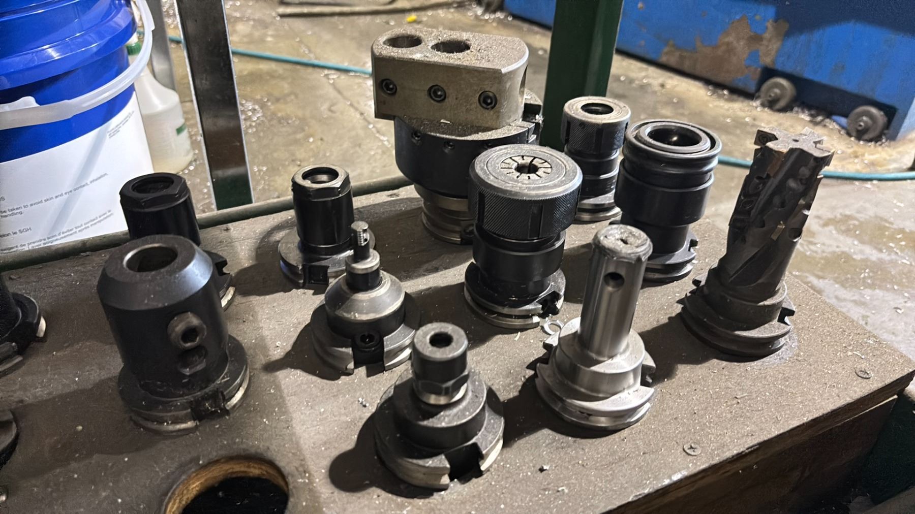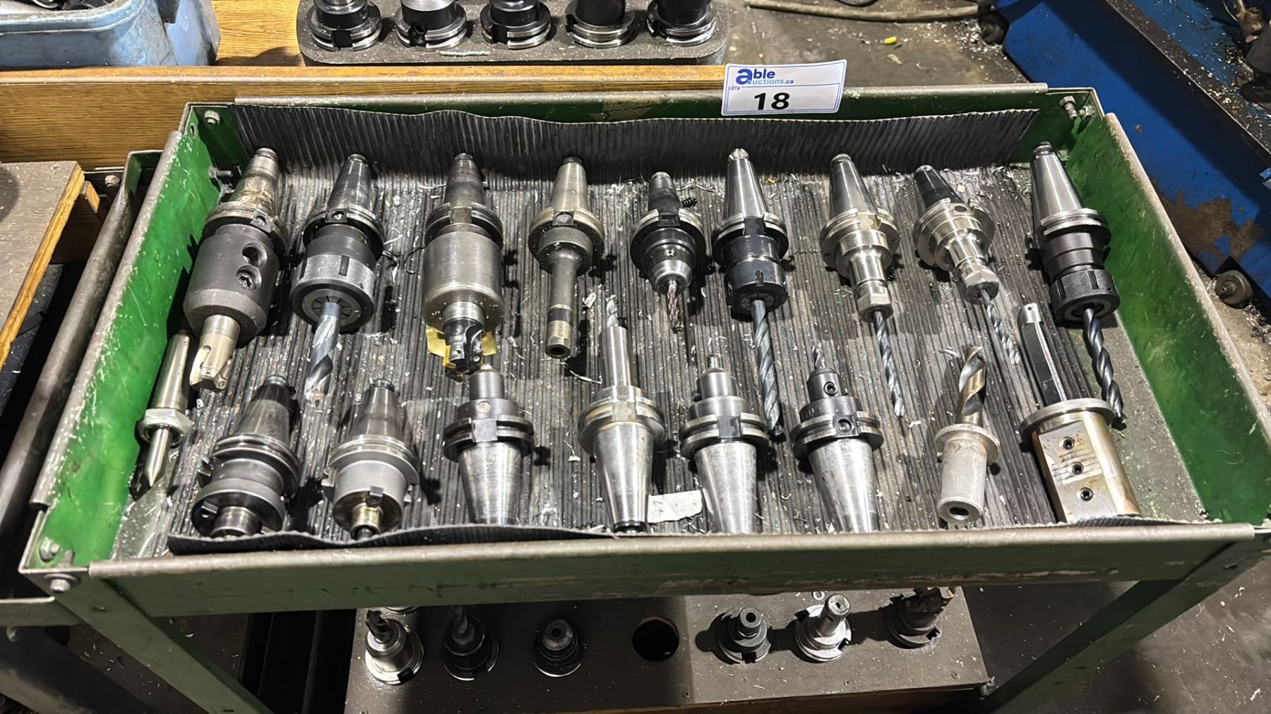 2 TIER MOBILE PRODUCT CART WITH ASSORTED COMMERCIAL INDUSTRIAL CNC MACHINE TOOLING / HEADS