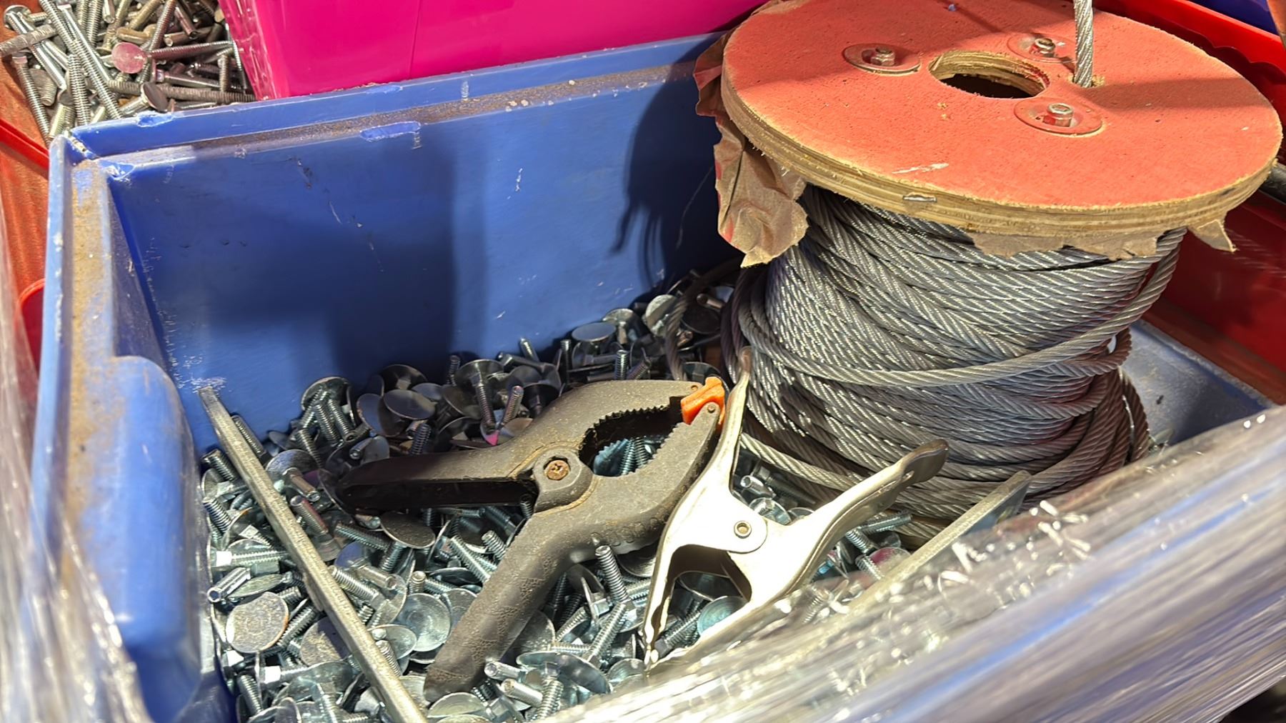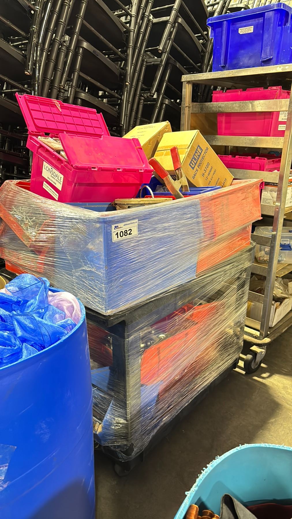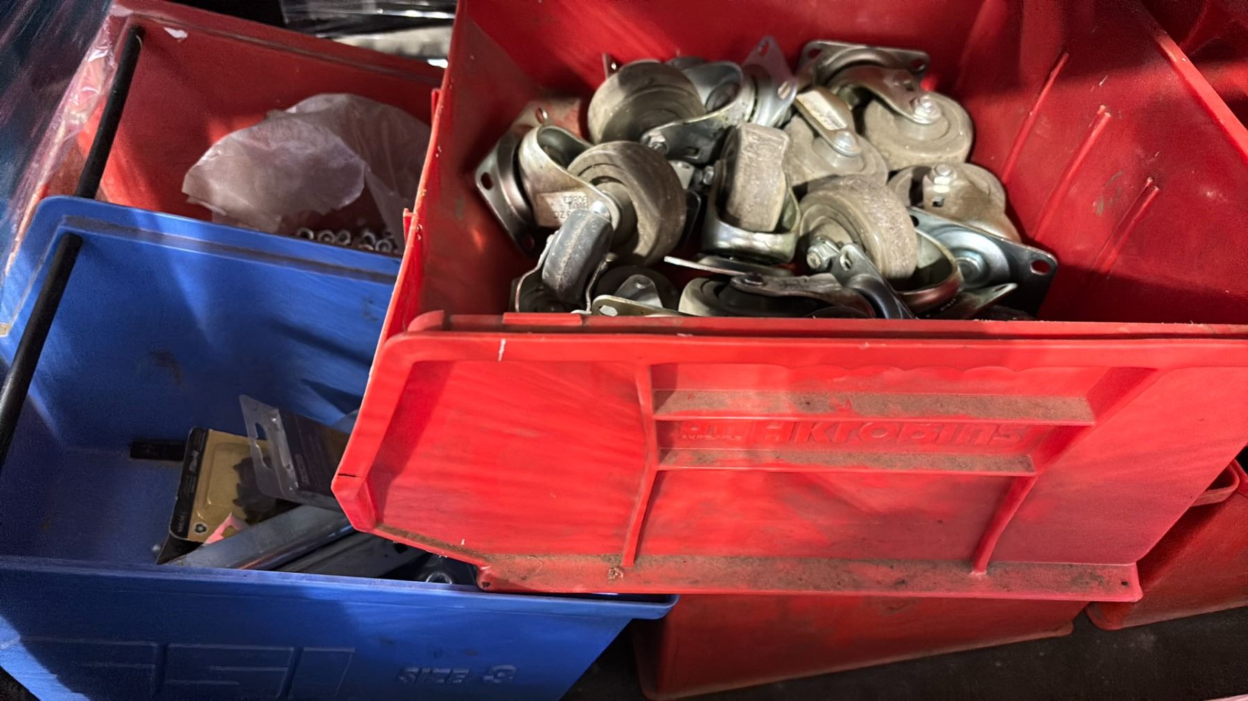 2 TIER MOBILE SERVICE REPAIR CART WITH ASSORTED BINS OF HARDWARE, CABLE & REPAIR CONTENTS *BINS INCLUDED*