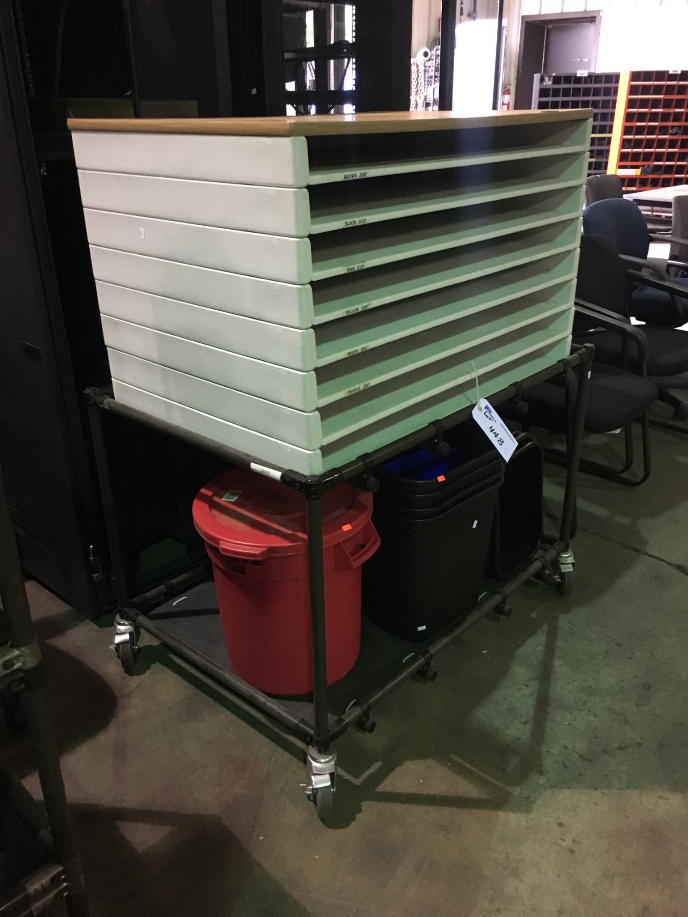 2 TIER TUBE MADE MOBILE PLAN CART WITH WASTE CANS