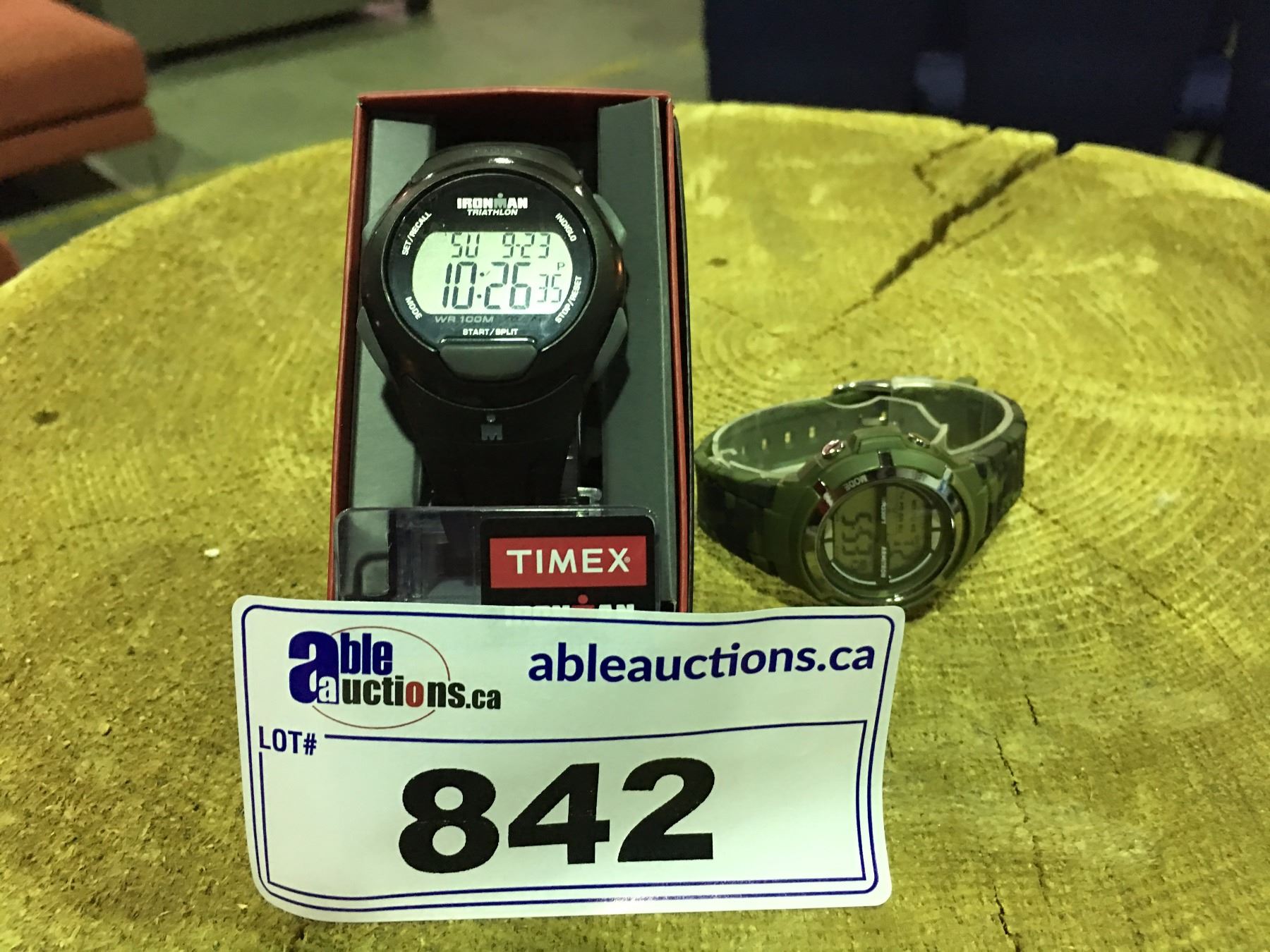 2 TIMEX IRONMAN WRIST WATCH & MILITARY GREEN CAMO WRIST WATCH